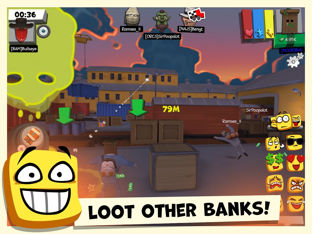 Snipers vs Thieves: Classic! - Get or protect money! Which side will you take: get together with dangerous guys and rob a bank, or get a job as a sniper and at any cost do not let bandits into the territory? Collect a collection of interesting masks for robberies and buy strong bombs to neutralize the defenders. Expect thieves as easy prey and watch the cache until they escape with it in a car. Join clans and play together with your friends in online mode, getting valuable rewards to increase the rating.