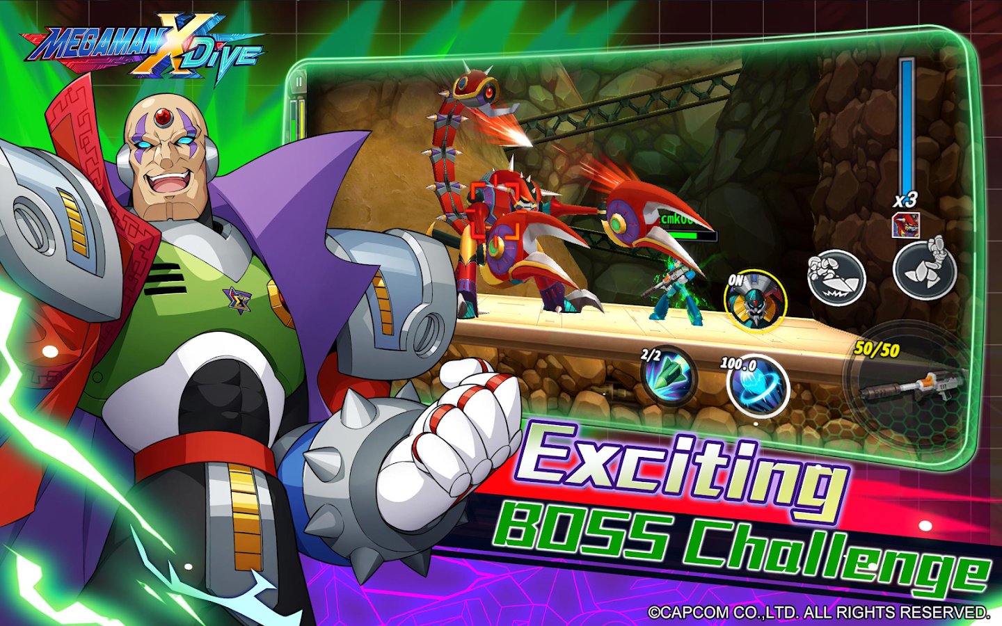 MEGA MAN X DiVE - MOBILE - Play as the bravest characters with superpowers to immerse yourself in a world of good and forget about evil forever. Enjoy the thrill of using various types of weapons in battles. Try to defeat bosses with each new strike and enjoy challenging levels to pass with friends. Demonstrate your fantastic abilities and showcase your entire arsenal. Jump high, run fast, fight professionally, and feel truly brave.