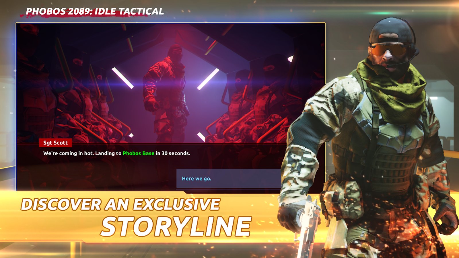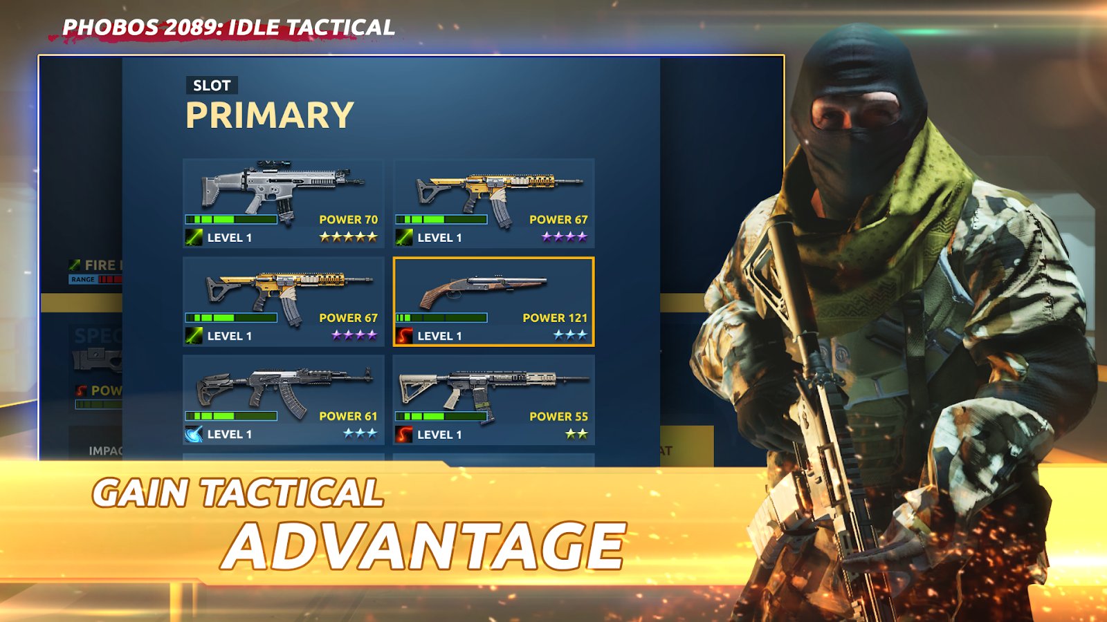 PHOBOS 2089: Idle Tactical - It s time to fight! Get strong weapons, strong armor, loyal allies and animals for additional help. On the way to victory over evil enemies, you will have to be afraid of trouble and at the same time fight with opponents, even if they are many times better than you. Calculate your every move, thinking in advance how to do the right thing to stay in the black over your rivals. The Special Forces unit needs the same operatives as you, so take care of yourself and constantly pump up!