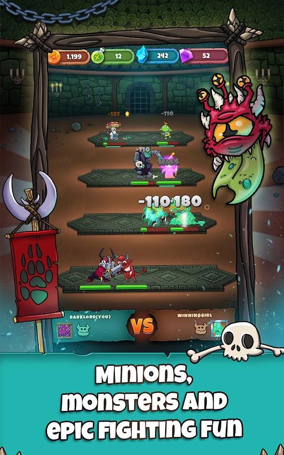Minion Fighters: Epic Monsters - Participate in even the most difficult battles to always win and get what you want! Create a team of strong gladiators, while constantly training them, improve their abilities and give them everything. Go through a huge number of challenges in the dungeons, getting new characteristics and equipment. Collect well-deserved trophies and achievements, destroy any opponents on your way, raise your own level and enjoy the process, which will be full of various adventures, unusual events.