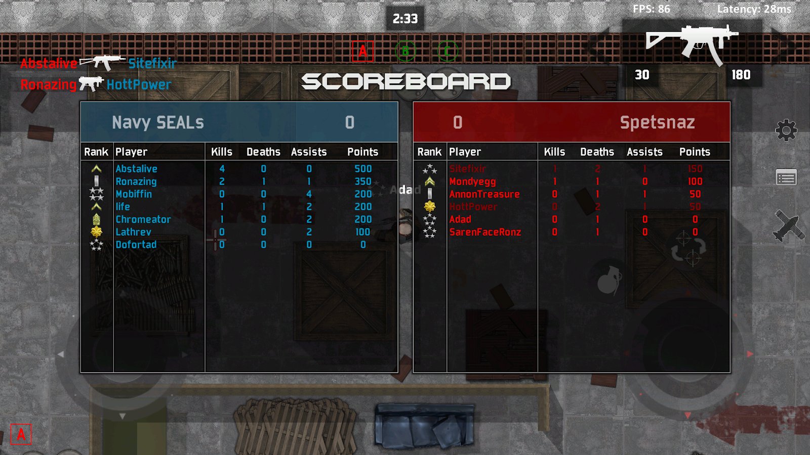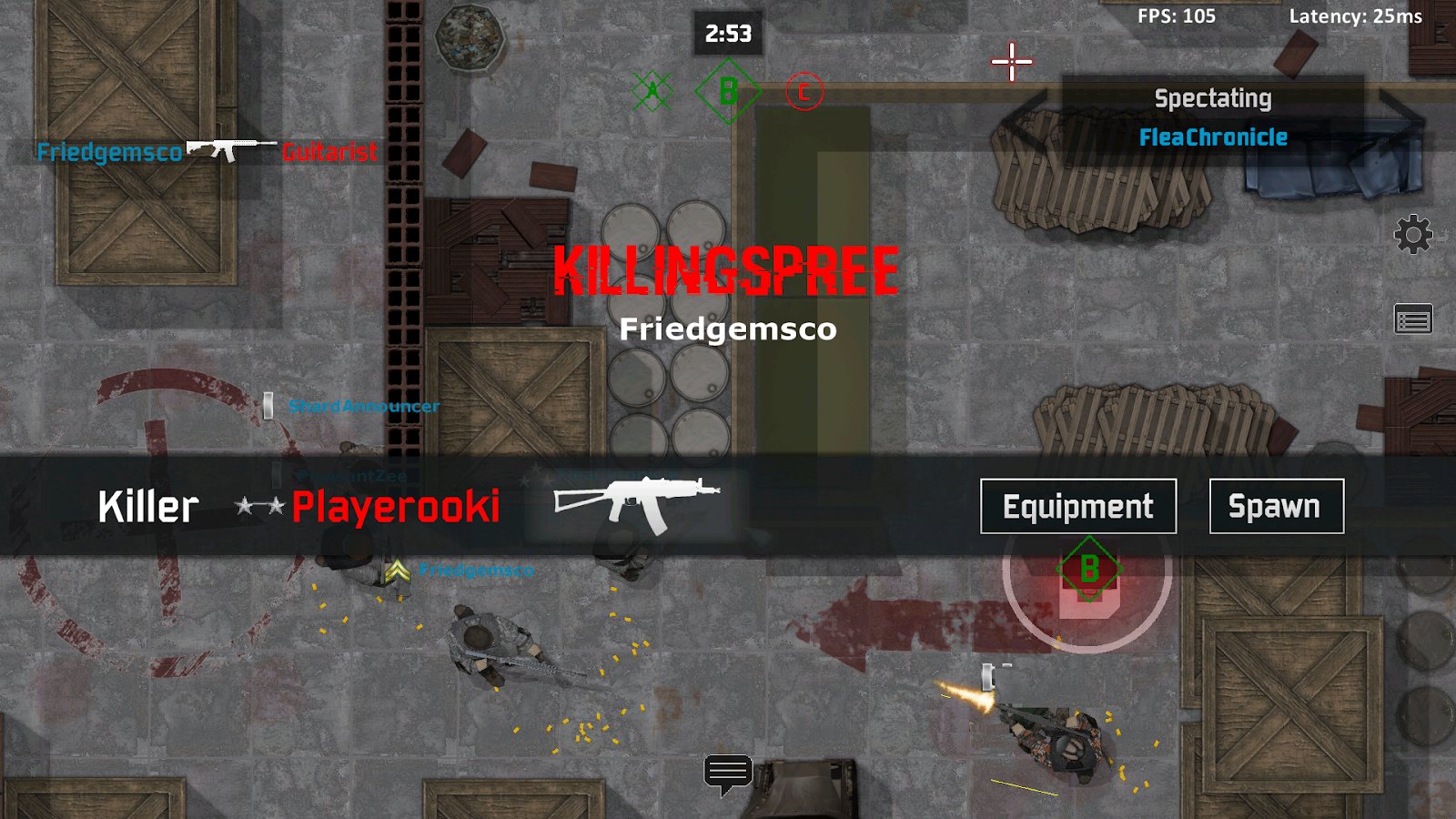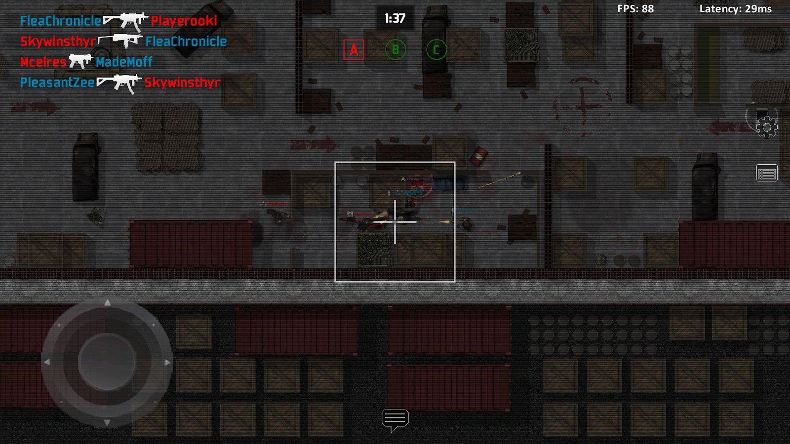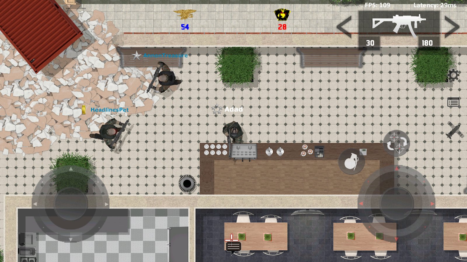Warforce Online 2D Shooter third-person shooter, top view. You have to win a confrontation against opponents. Destroying enemies, you get rank and rank, each time you can use a variety of weapons, from pistols to grenades. Use the features of the map, use natural shelters. The game has 6 modes: death match, team battle to the death, domination, last command, Launch, launch Deathmatch. Play with friends and arrange friendly tournaments.
