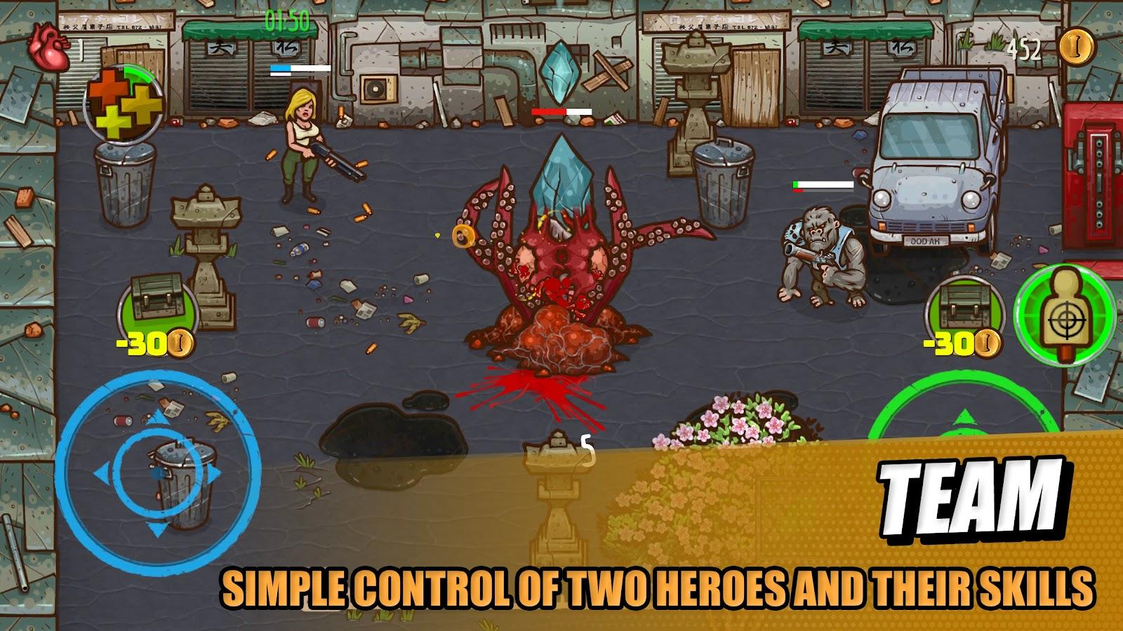 Apocalypse Heroes - Only natural born warriors are able to stop all the monsters who dared to arrange an apocalypse on Earth for their own purposes! Something very strange is happening: the dead come to life again, mutations change organisms, and robots or some mechanisms rebel against humanity. Take all your collected experience and available weapons, recovering together with another character, which you will also control, to complete a mission to completely destroy evil. Upgrade your favorite guns, move around the world and get precious medals!