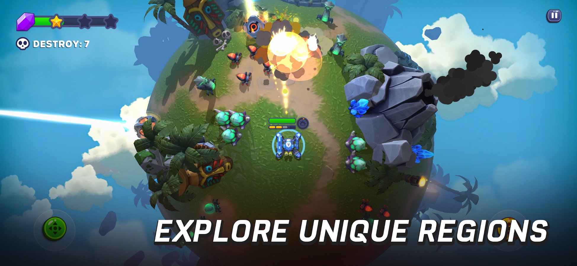 Planethalla - prepare your own robot for battle. Collect precious crystals on each of the levels, navigate through various planets to search for special amplifiers, upgrade the weapons you receive and defeat many unknown opponents who have entered your path. Although there are only 3 main regions, they differ significantly from each other in interesting locations, so you should visit them and see what you generally find.