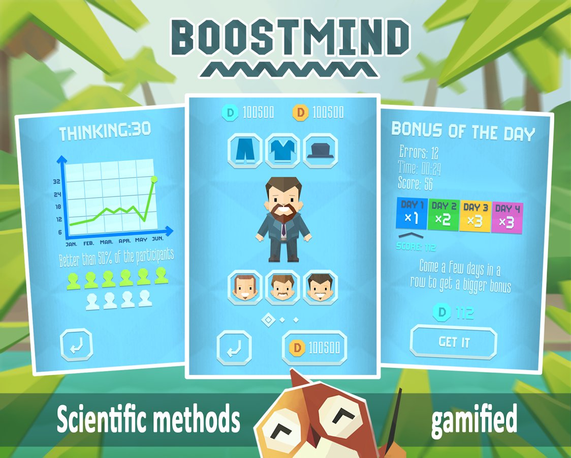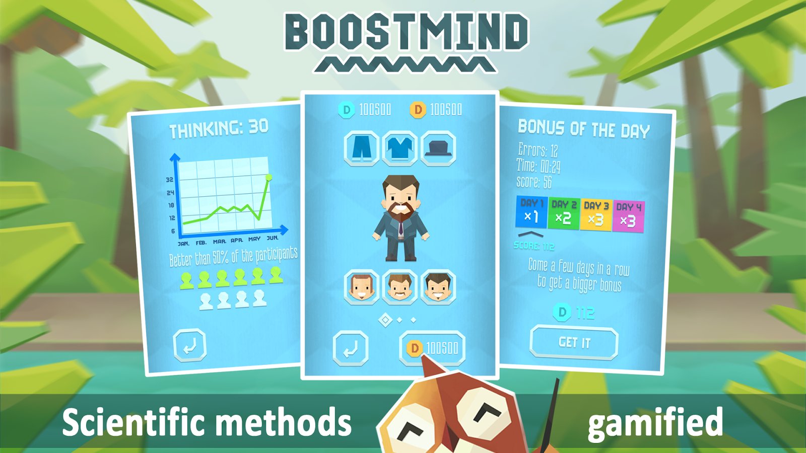 Boostmind - brain training puzzle game for Android, which will train your mental ability and intelligence. In this game you have to solve difficult tasks, puzzles and many exercises which will select for you the personal trainer that you develop their memory, logic, thinking, reflexes and many other skills that will be useful to you in everyday life. This game is suitable both for adults and for children, where you play mini-games and fun to spend their free time while training your brain. Watch your progress in this game and track yourself on the leaderboard, competing with the best players in the first place.