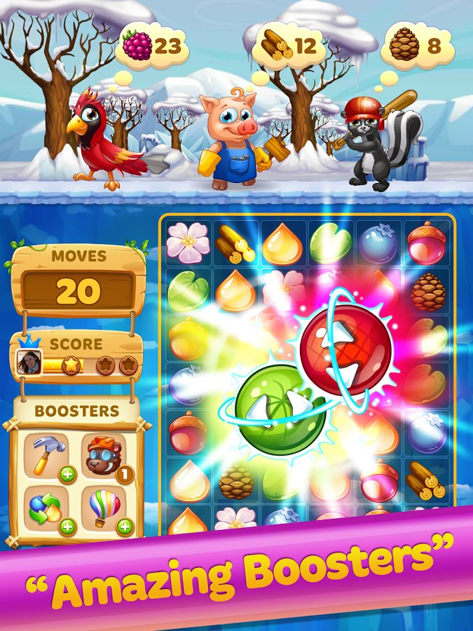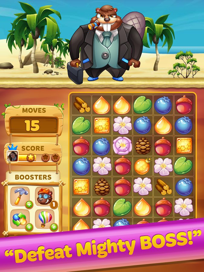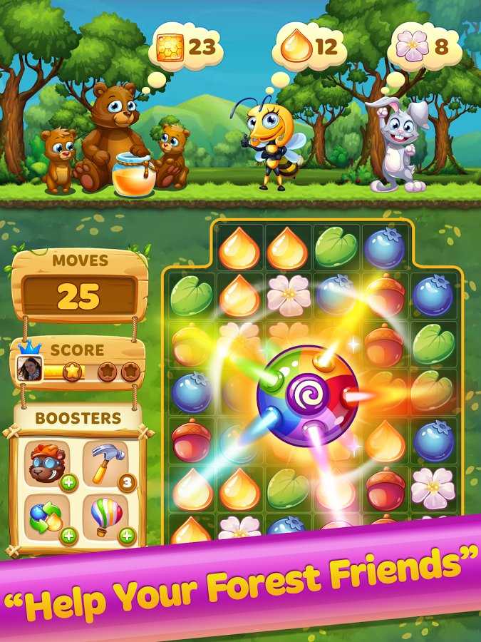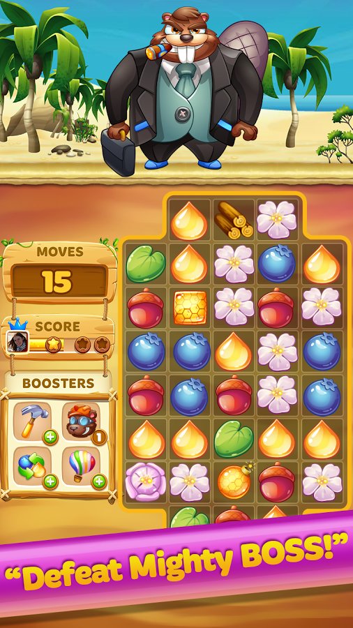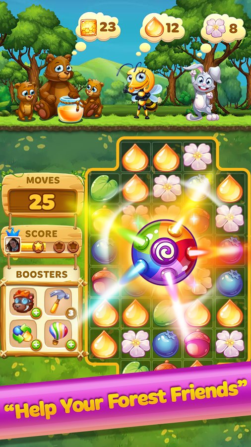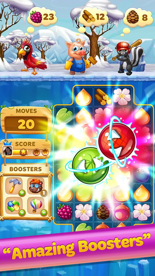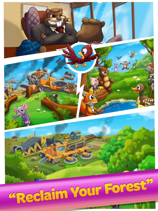 Forest Rescue 2 Friends United – a game for Android genre of three in a row. In this game you will help the cute inhabitants of the forest to keep their trees and not to give the angry beavers turn them into splinters. Match three or more identical objects in a row and blow them up. Exert all your efforts and mental skills to solve simple puzzles and fight back the destructive techniques of beavers. Create as long rows of leaves, flowers, berries and honey and they fill all the playing field. In difficult situations, take advantage of useful power UPS and bonuses that will help you faster pass the level and earn as many points as possible.