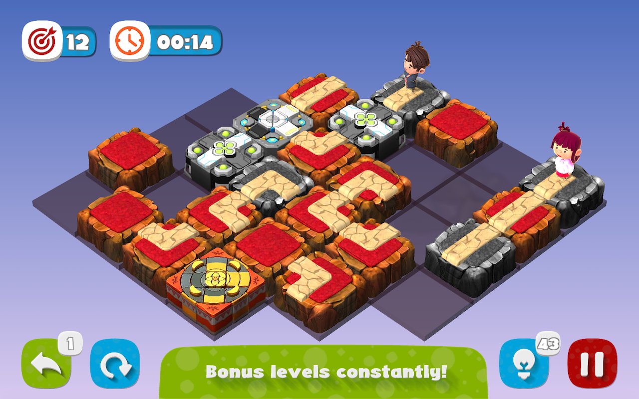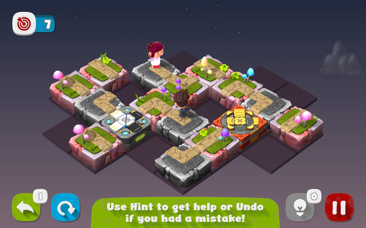 Game mechanics are pretty simple, move a three-dimensional tiles, in the manner of the tag, so that ultimately was the path on which our heroes will be able to reach each other.