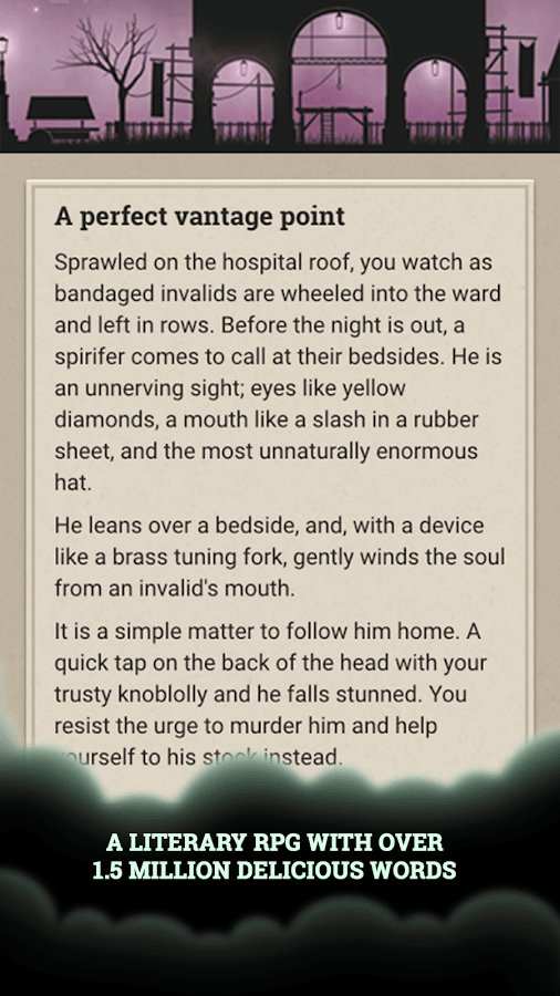 the game takes place in the Fallen London, alternative Victorian London with Gothic entourage. The game begins to develop from the moment the moment the bats seize power in the city, you also have complete freedom of action, explore the world, complete various tasks.