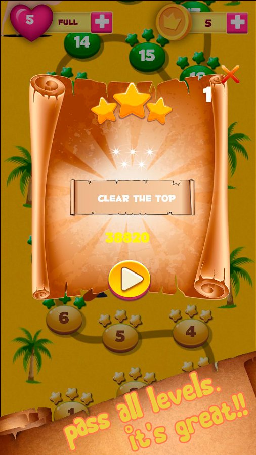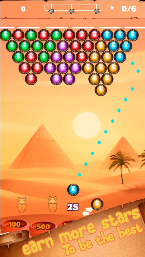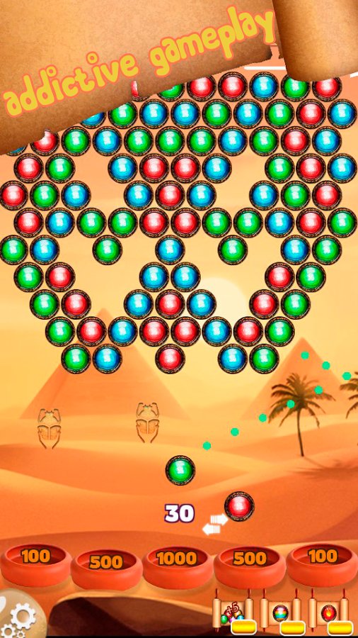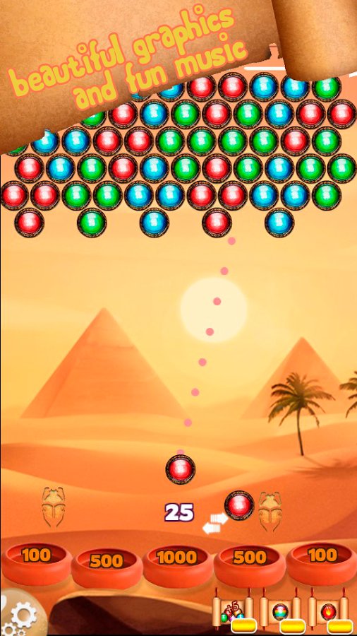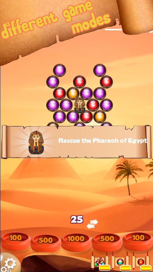Treasures of Egypt – puzzle game for Android that takes you into the world of the pharaohs of Ancient Egypt. In this game your task is to shoot colored balls in the cluster of them on top to add as many same colored balls in a series. Blow up colorful balloons and gain points thereby. The game features two game modes: the first mode is a Puzzle where your task is to shoot balls as accurate as possible without errors and double points, getting bonuses. The second mode Bosses where you have to free Pharaoh s way which conceals the colored balls. The game is suitable for any age and level of training, play and have fun with setting your records.