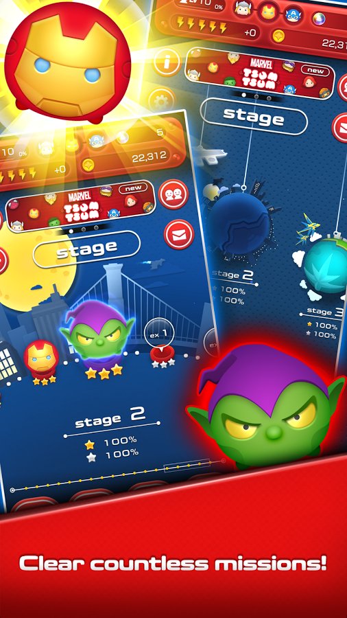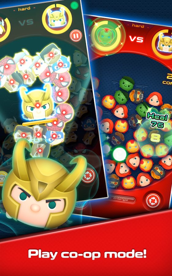 MARVEL Tsum Tsum game on Android where you will help the super heroes to fight evil. Match three or more identical super heroes in the ranks and defeat them, thereby gaining points and rewards. The more you connect the figures of super heroes, the more villains will prevail. Show all your attentiveness and good reaction, combining super heroes in long chains and producing combos. Collect enough points to defeat all evil and use various bonuses in the form of bombochek. Perform all assigned tasks and unlock new super characters and worlds. The game features two game modes where you can compete with friends and other players from around the world.