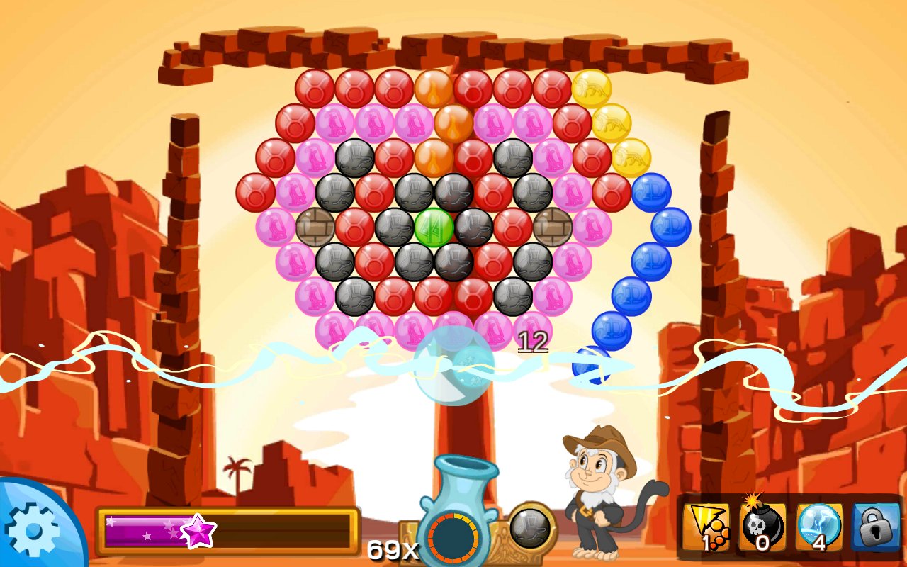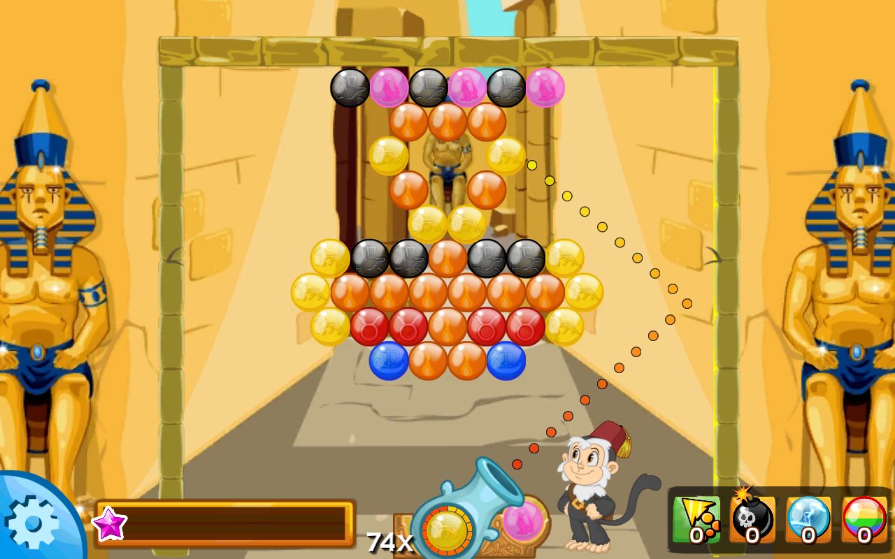 Bubble Raider – shoot from a cannon and blast them in this fun game for Android. Use your logic the excellent shooting skills to accurately determine the trajectory of the bubble and into a cluster of identical balls at the top. Match groups of three or more similar color bubbles and make them disappear, clearing the playing field. Along with the fun monkey travel at numerous levels of the game and score enough points. Help monkey to get many treasure games, ranging from gold of the pharaohs and ending with the ancient artifacts of China. Accurately shoot bubbles and try to do a punch combo, by building the longest chain.