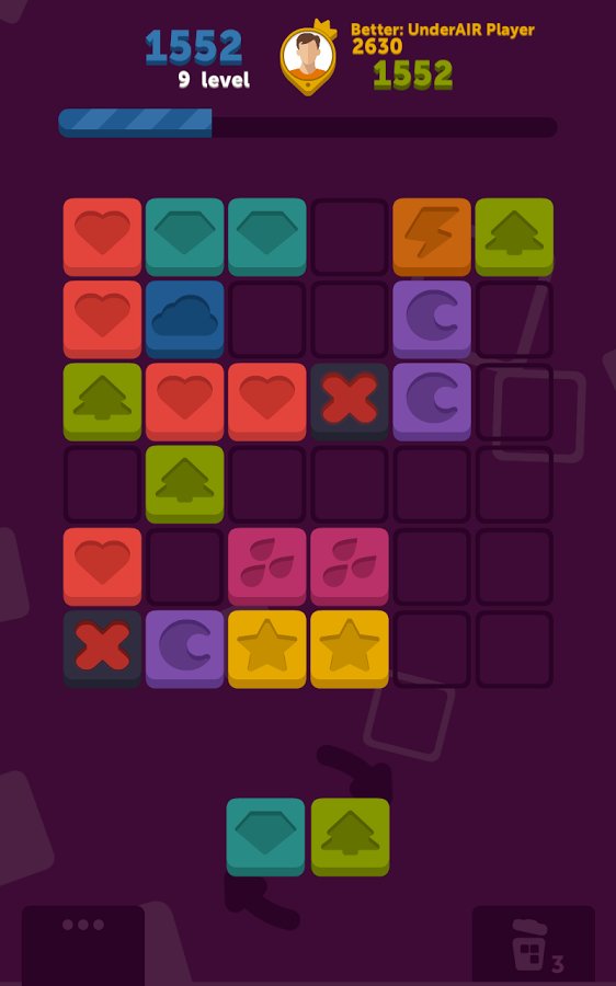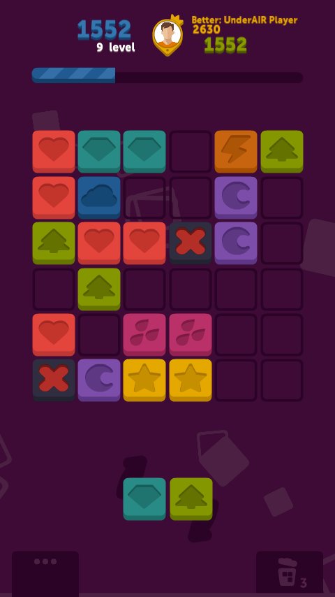 Placid Place: Color Tiles – puzzle game for Android where you make rows of identical cubes. On the playing field, there are various shapes of colorful blocks, your task will be to compose them in that order, to get three or more identical cubes in a row. Match same cubes and they will disappear, freeing up space on the playing field. Touch your finger to the screen of your phone or tablet and spin the figures so to get optimal results. Install them in the right place and try to collect as long a series. Collect enough points and compete with friends for the best score.