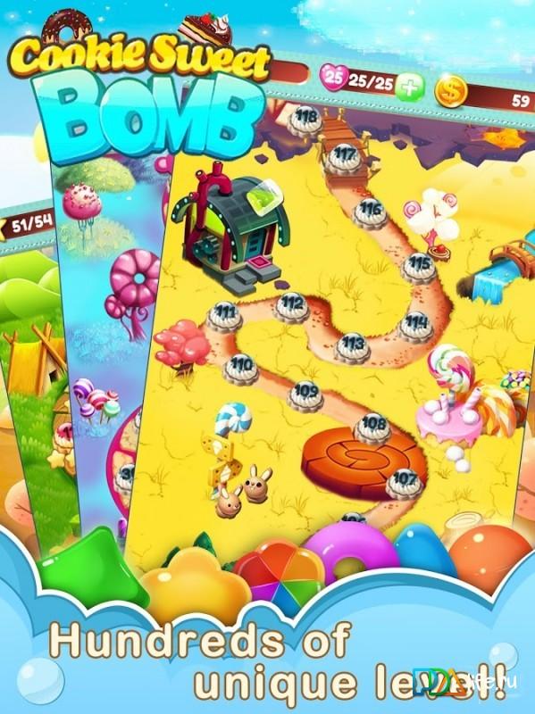 Cookie Sweet Bomb! – match three or more sweets in this fun game and travel to the worlds delicious. Sort between numerous sweets and gain experience in the confectionery business. Get new ingredients for his recipes and create your kitchen unique and unique cakes, pastries and biscuits. Create as long rows of sweets and get access to new components for desserts. Have to use useful bonuses through which you will be able to start a chain reaction of colorful explosions of sweets, and thereby quickly pass the levels.