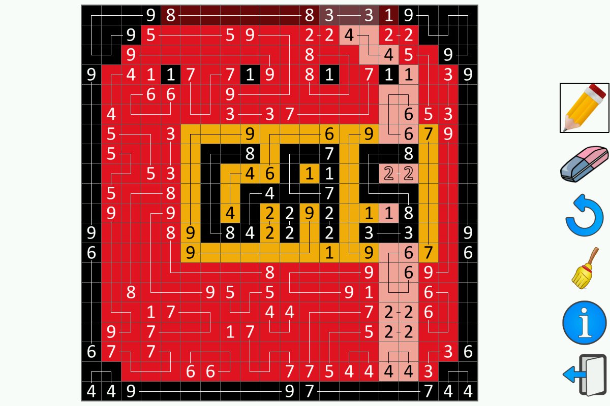 CFCross Philippine puzzles – a puzzle game for Android where you, using paint numbers will get the picture. In this game you will see field on which there are figures each of which has its couple, except one. Your task will be to connect the same color numbers and paint over the distance between them in one color. Connect all the numbers with lines and see that they do not overlap with other lines. Lines can be placed both vertically and horizontally, but in any case, not diagonally. Connect the lines, paint the picture and see what you get in the end.