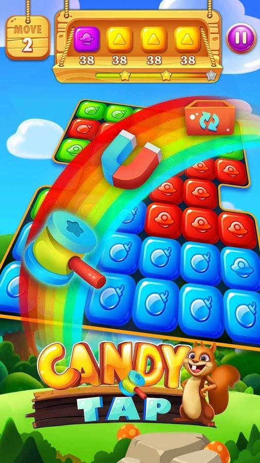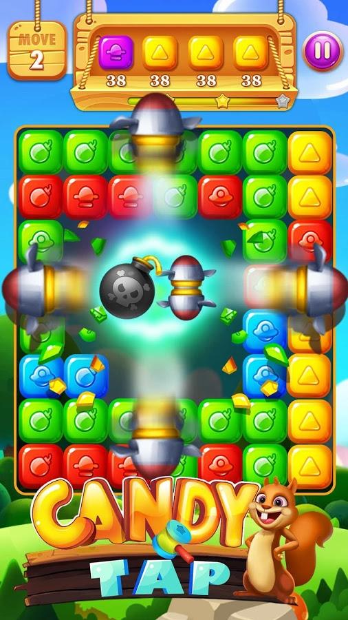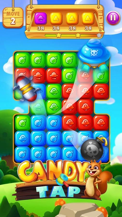 Candy Tap Tap – the game for Android genre of three in a series where you ll travel in a sweet world and collect colored candies. Match colored blocks and tap on them to give a blast that will clear the Board of sweets. Explore the magical world of this game and collect enough sweets to compete with experienced players for the best results. Blow up as many sweets to start a chain reaction and get as a reward numerous bonuses. Use different bonuses and go through challenging levels for a minimum period of time, setting its record.