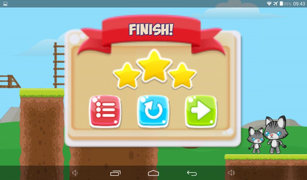 Kitty s Way – an addictive puzzle game for Android where you will help the kitten to get to my mother. In this game you will see a level with many obstacles, chasms and platforms, your task is to rank the available stairs, bridges, boxes, and other devices so that the kitten could pass freely to the mother. With each new level complexity of game will increase and you will have a hard time to go through it. The 16 non-repeating levels and a lot of inventory. Play this game and climb to the top of the leaderboards and unlock all achievements.