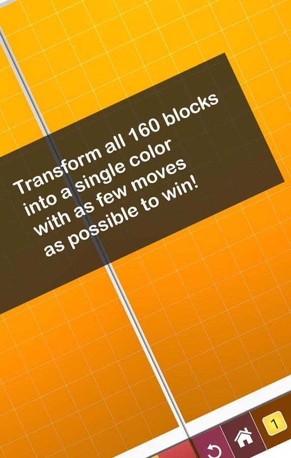 160 Blocks is an interesting puzzle game for Android where your main task will be to paint the playing field in one color. On the box appear figures of different colors, your task will be using a single touch on the screen to paint the entire field in a single color using the fewest possible moves. This game will train your logic, attention and memory where you will carefully think through every step. Play this game and get maximum enjoyment from minimalistic graphics and three game modes. As you progress through the game unlock new levels, which will delight you with more complex tasks.