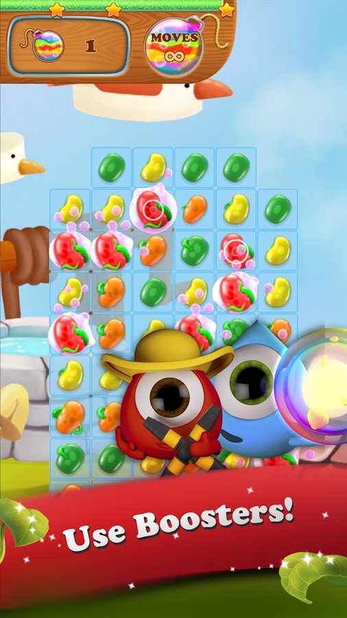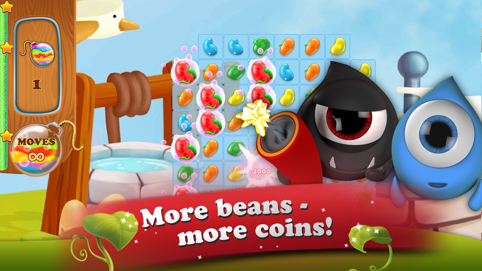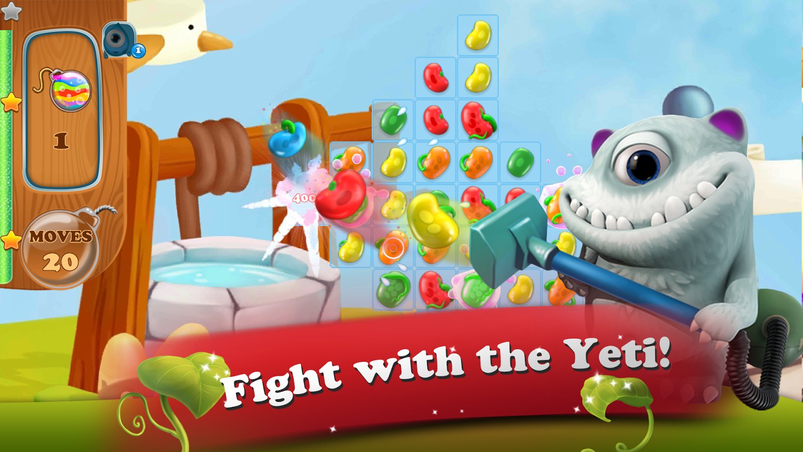 Fairytale Hero: Match 3 Puzzle game for Android genre of three in a row where you will help a knight save the Princess from the clutches of the terrible Yeti. In this game your main task will be to create as long rows of beans and climb higher the Beanstalk to reach the castle of the Yeti and destroy it. Perform all assigned tasks and missions and going through all the levels using as few moves as possible. Use in this game, all your logic, intelligence and excellent response receiving a reward bonuses. Blow up as many beans and help the Princess.