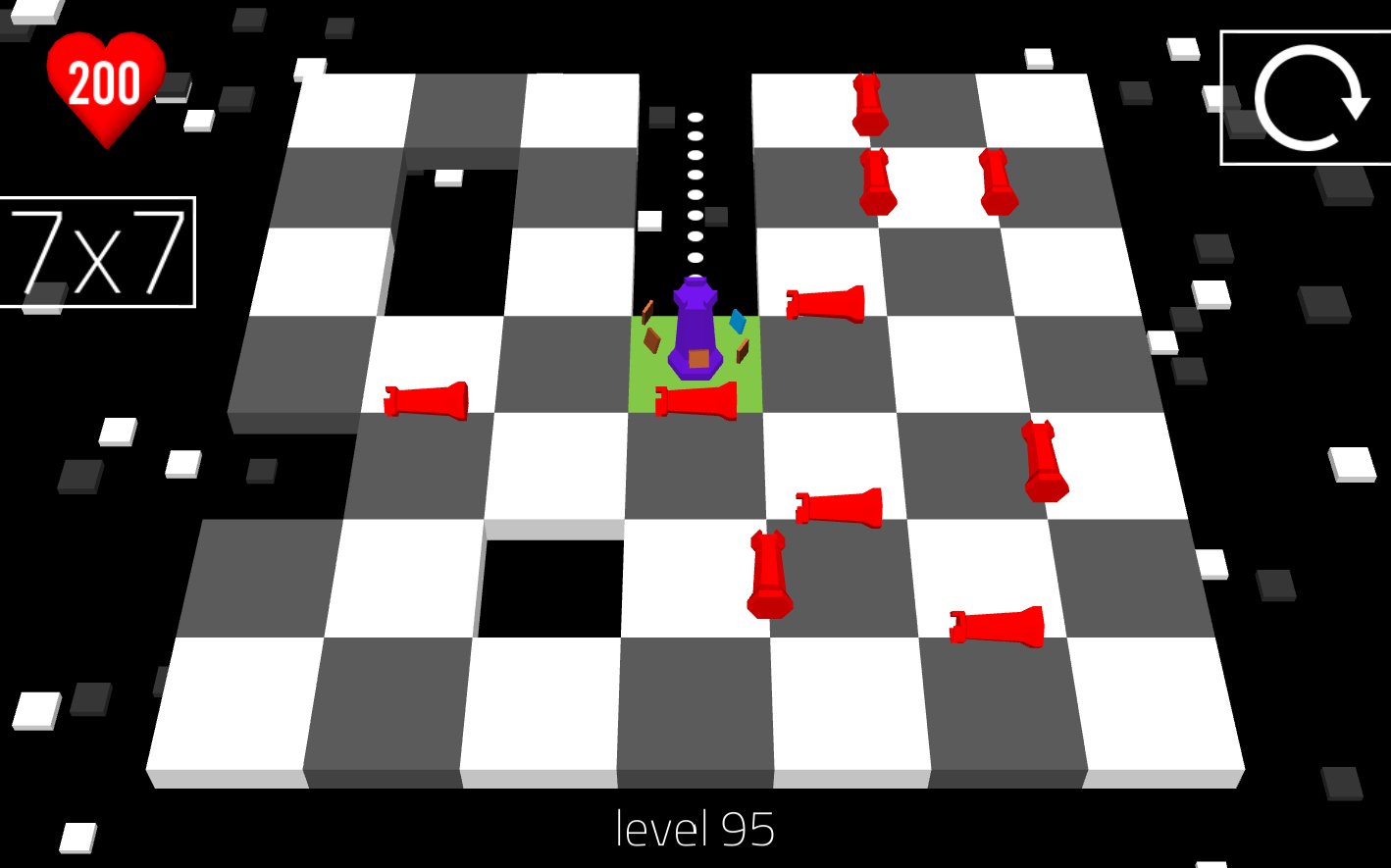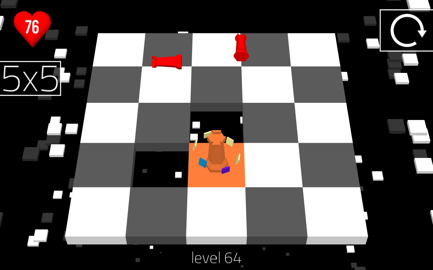 Rookfall is a logic puzzle game with spatial - positional gameplay. The essence of the game is very simple, first you need to choose the value field, the options available are three sizes of 5x5, 6x6, 7x7, then you must place the game piece is a chess piece, the rook, the goal of the game is to move the figure to remove all tiles on the field, it should be remembered that the rook moves in a straight line from edge to edge. As the playing field is not rare fallen figures, which will make it difficult to move. All in each of the modes, hundreds of levels, so fans of similar games will do.