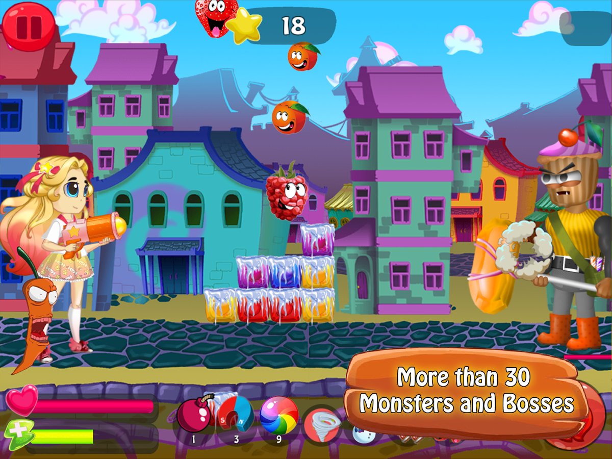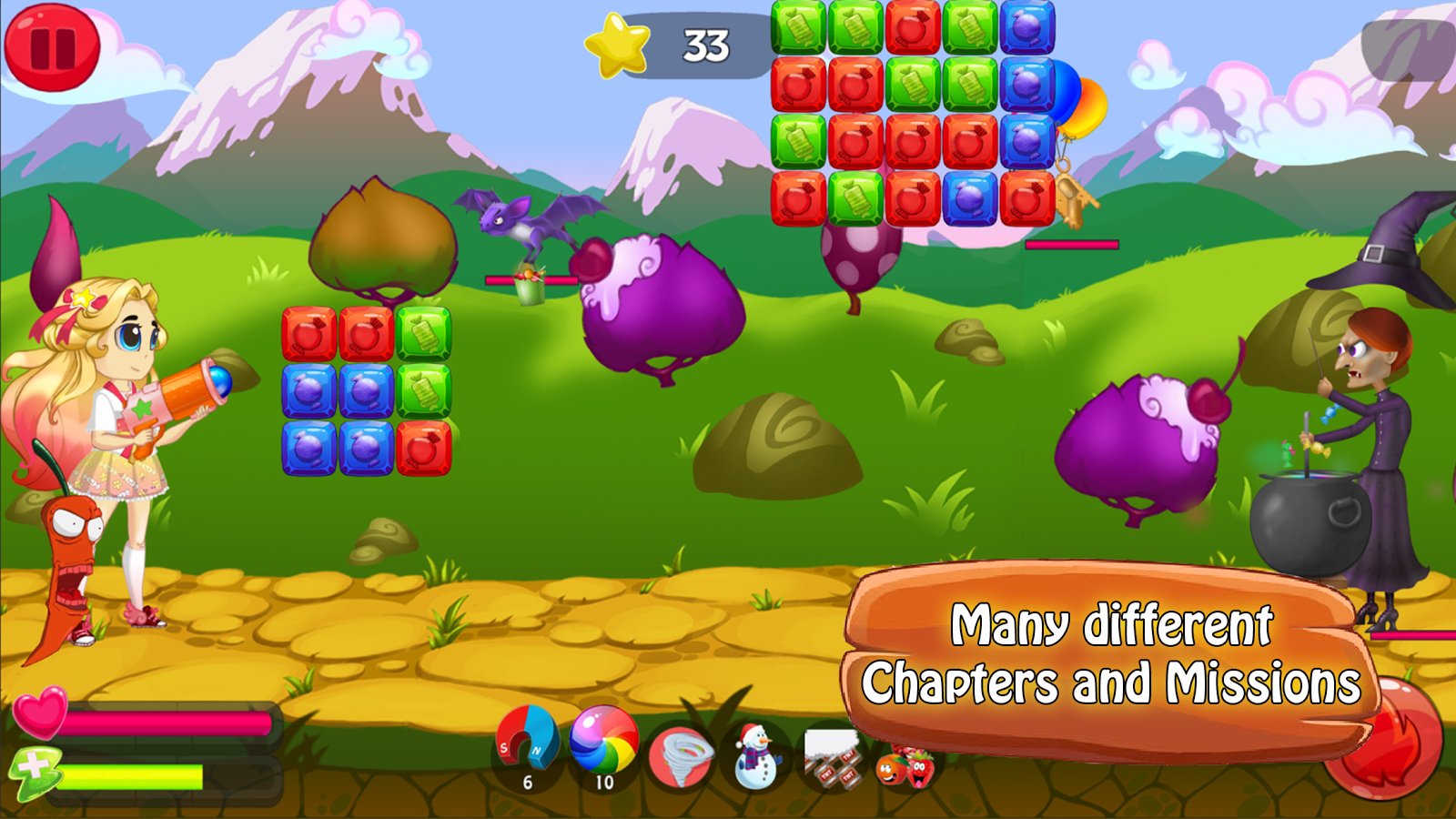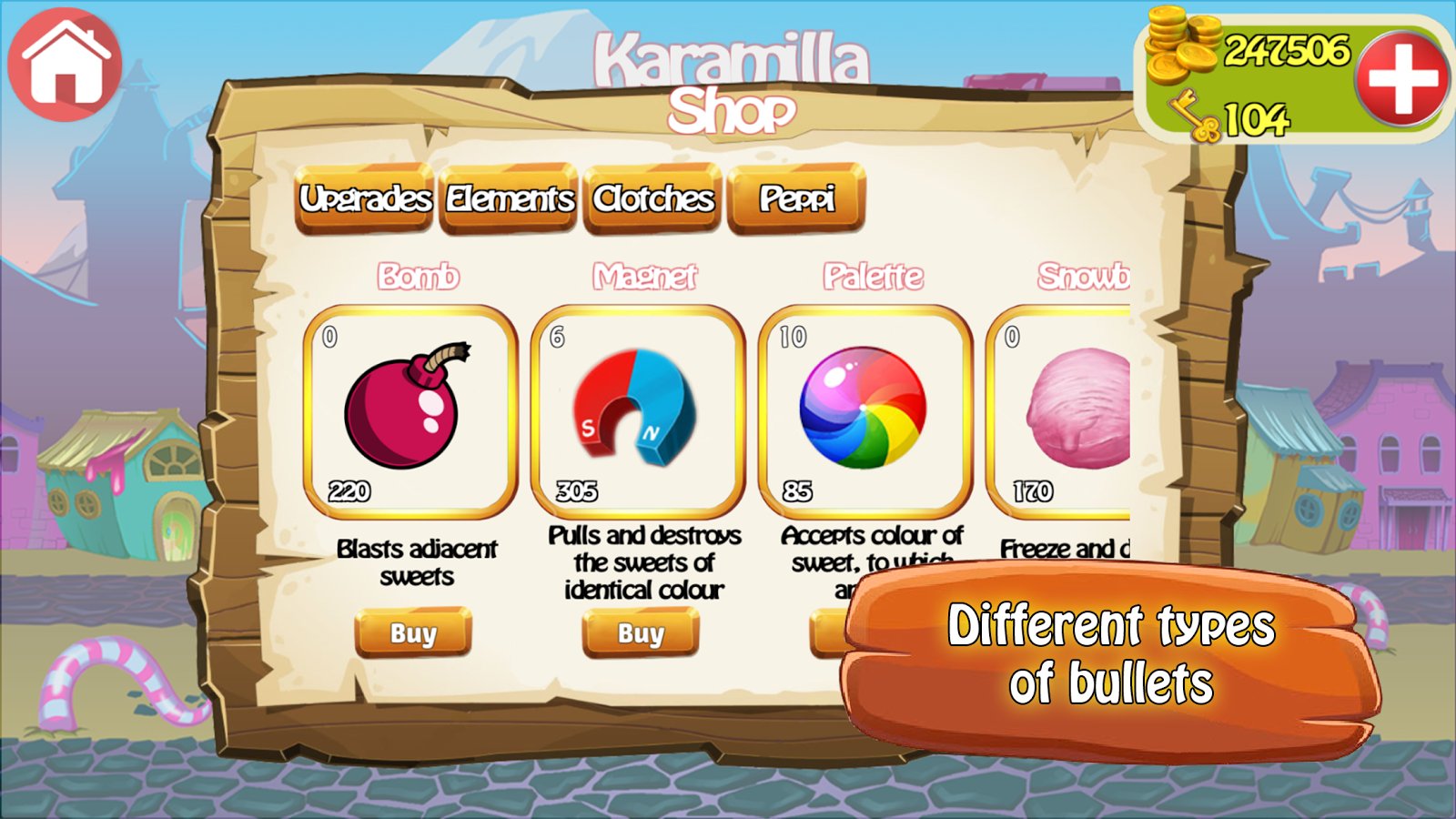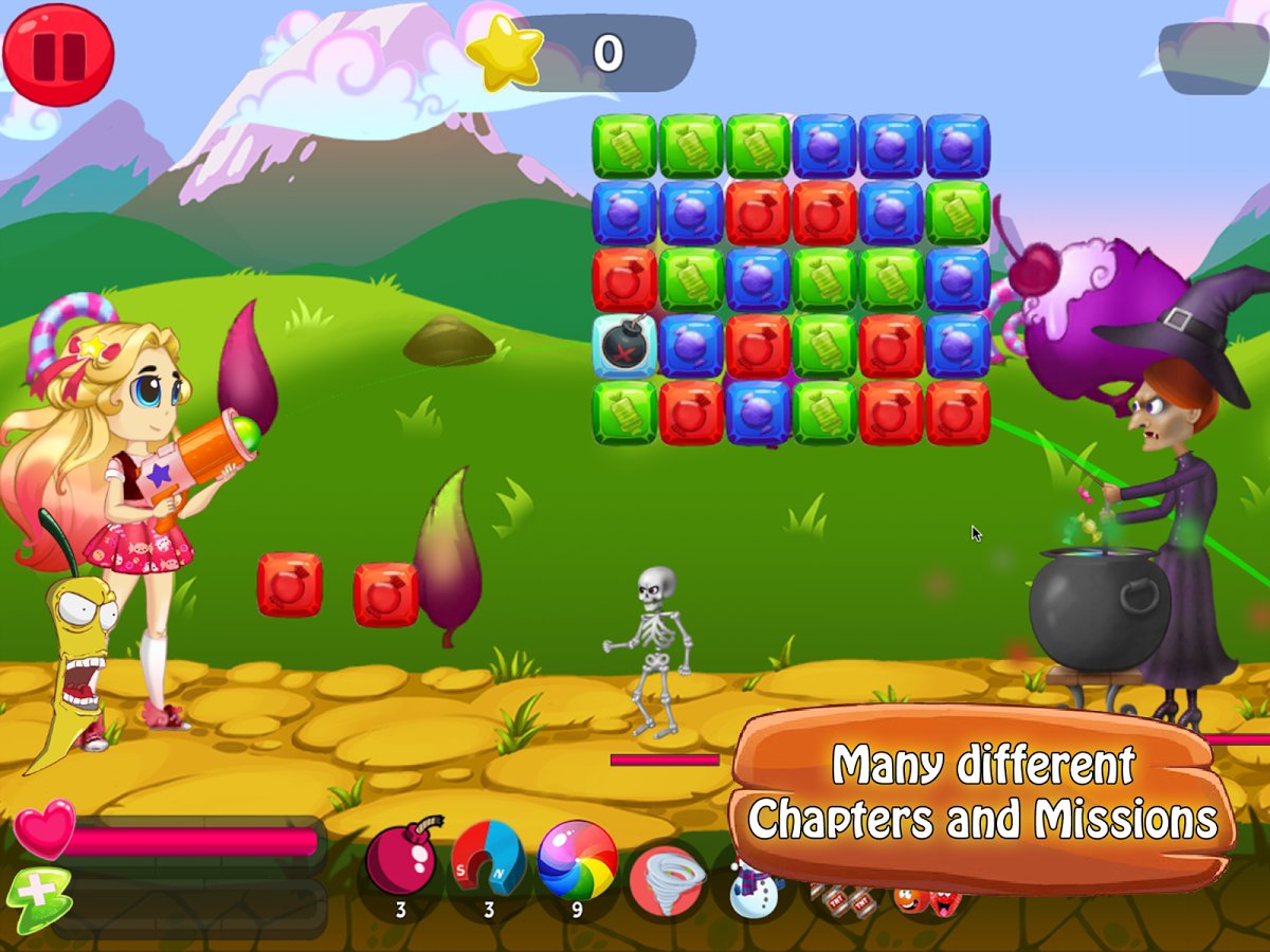 Karamilla - candy monsters – a fascinating game on Android, which combines several genres such as: 2 in a row, arcade and adventure. In this game you will find yourself in the beautiful country of Suitland where the confectionery factory produces a variety of sweets. At one point the country changed its course, the confectionery factory meteorite fell and all the sweets turned into horrible monsters. These monsters in the form of candies, cookies, toffee, popcorn, marshmello and Chupa Chups under the leadership of the terrible Caramillo decided to take over fairyland. Match two or more objects in a row and blow them up. Go through exciting levels of this game and stop raging sweetness.