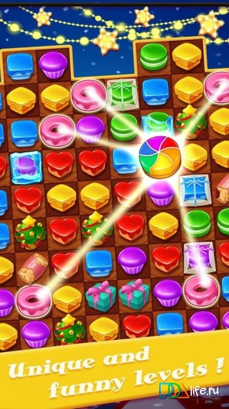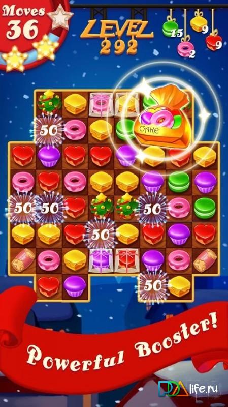 Cookie Blast - Christmas Fun – make sweet rows of candy, cookies, candies and other sweets to make them disappear. In this game you find yourself in the world of sweets, Christmas gifts and a festive atmosphere. Sort out among themselves the exact same color and type of sweets and arrange rows of three or more. Try to make as long chain of identical objects to reveal all the bags of Santa Claus to learn that to be there. Start a chain reaction of explosions and earn reward different bonuses and bonuses. Complete all missions and try to approach Christmas.