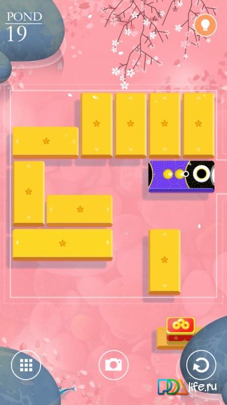 POND JOURNEY - Unblock Me – addictive puzzle game for Android where you move a variety of blocks on the surface of the pond. In this game you will see field where you can see different blocks, your task is to move them around the screen such as to clear the way for the red block. Try to complete levels in the minimum number of moves and get valuable rewards. Consider as well that in this game, but horizontal blocks will move horizontally and vertical vertically only. The game will delight players of many different levels and nice graphics. Play this game and get maximum enjoyment by applying your intelligence.