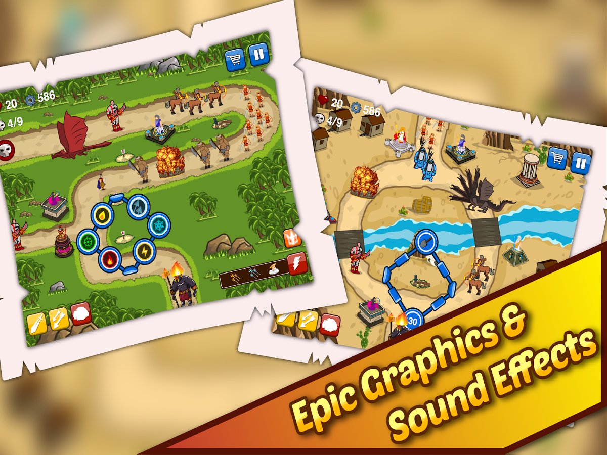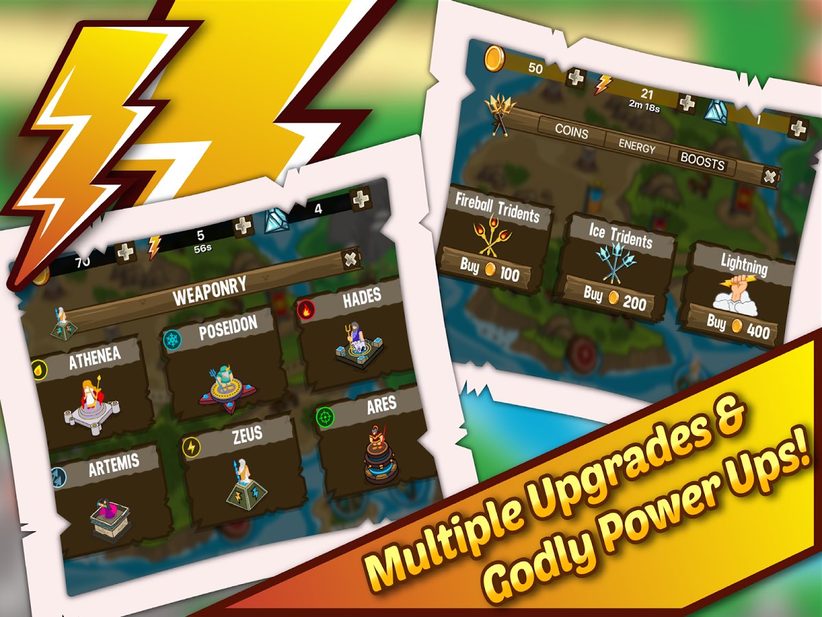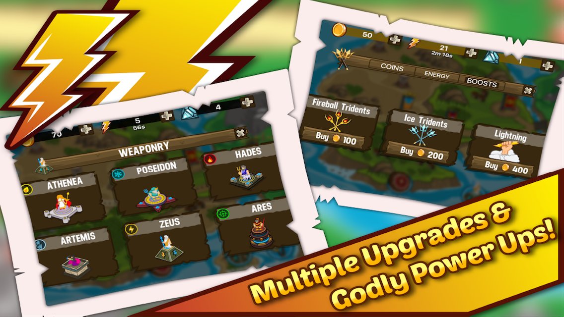 Olympus God Zeus Defense TD strategy game in which you help the ancient Greek gods to defend Olympus. Get ready for a thrilling battle where you will place the gods so as to show their skills and weapons in the fight against enemies, such as Cyclops, Chimera and other monsters. Protect mount Olympus from the enemy by all means and ways. Enemies will attack the mountain from all sides, apply the unique properties of the gods, placing them in key places. Zeus, Poseidon, Hades and other gods will come to the defense of his Olympus, help them in battle. Each character in this game has unique properties and abilities that you can use to repel all enemies, and don t forget about the gain.