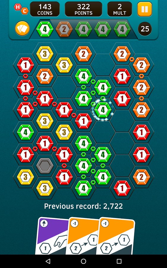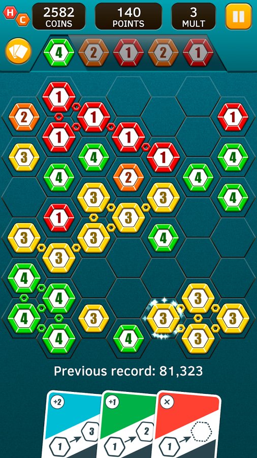 Hex Chains – an addictive puzzle game for Android where you will move on the playing field hexagons. In this game your main task will be to make chains of four or more chips of the same color and remove them from the Board. Use all your logic and mental skills to complete the level as fast as possible and earn maximum points. Use in-game maps that will help you out not need the chips, convert them to other or swap them. Collect points and spend them on the purchase of various improvements. Game players will appreciate the minimalist graphics, two game modes and multiple bonuses and power-UPS.