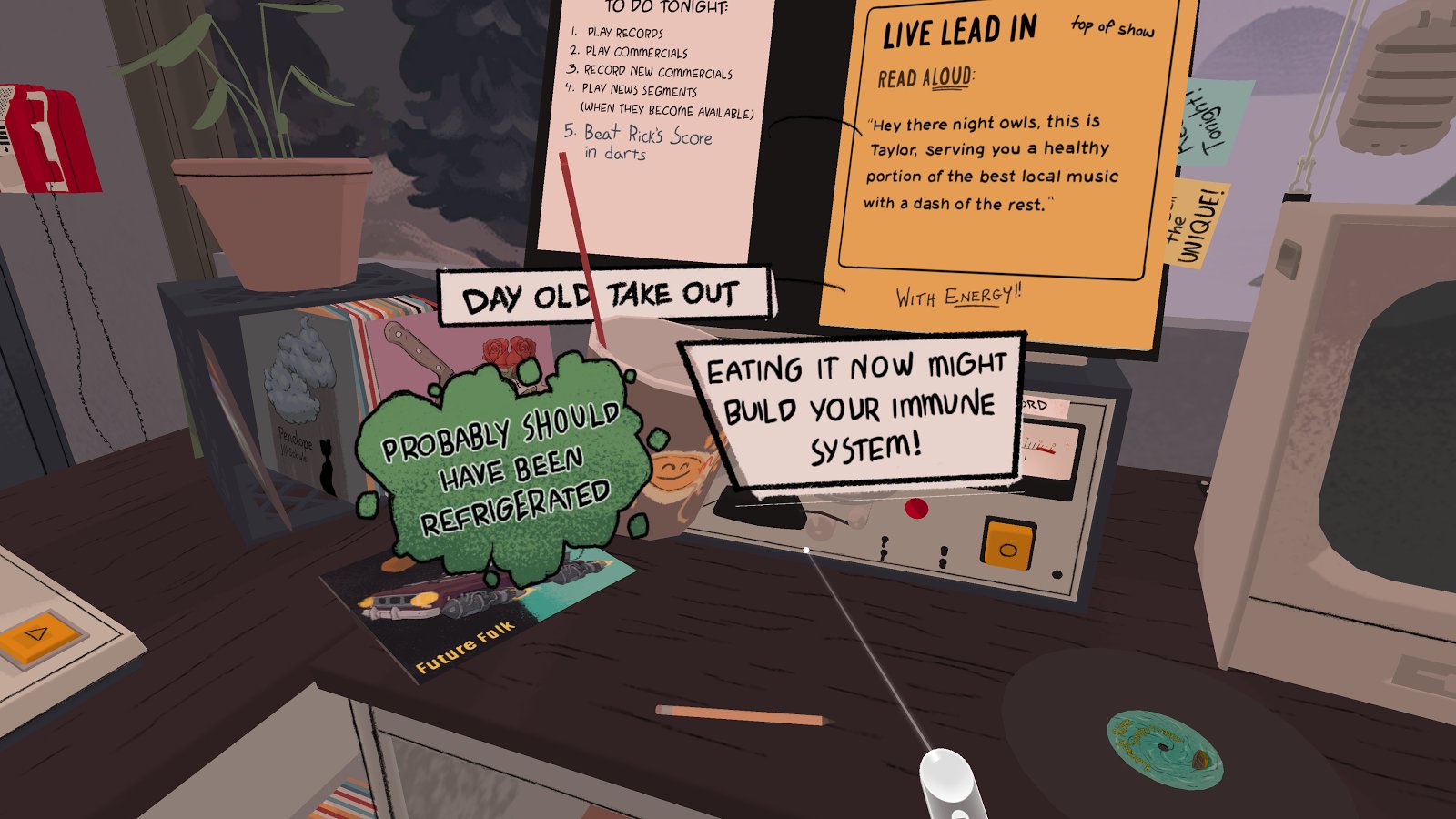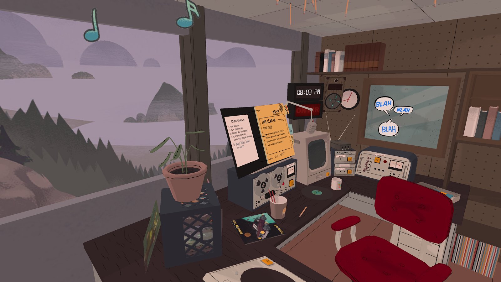 Untethered – a game for Android that will immerse you in virtual reality. In this game with a great storyline you will play the role of DJ, who has to solve the mystery of a small town in the state of Oregon. In the game you find yourself in a small radio station where you will put the records to answer the questions of listeners, chat live and listen to voice messages. Explore a small room in which you find yourself and interact with items and objects in it, trying to reveal all secrets and mysteries. Play this game in first person and enjoy the stylish graphics and excellent sound, and use a special VR glasses.