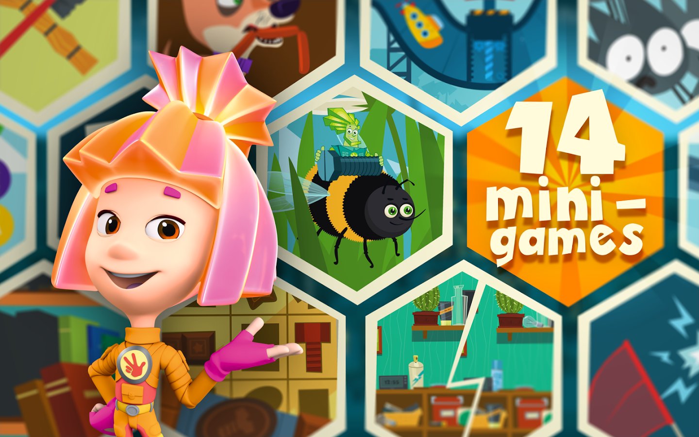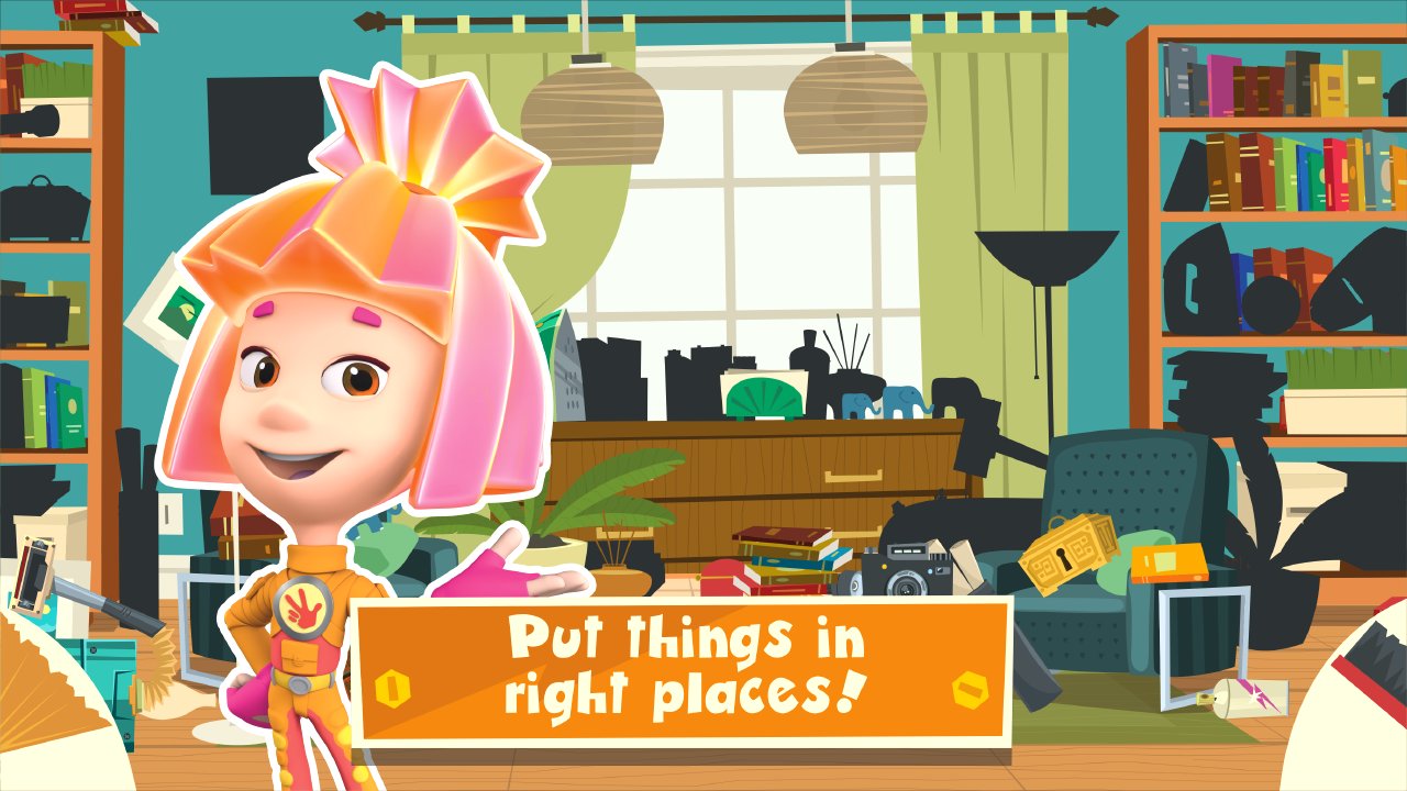 Fixies are Town Games for Kids - game for children which will entertain them with its simplicity, but also teach them something new. In this game there are many different jobs, and they are all wonderfully disguised as ordinary games. For example, in one of the games you will need to find all friends with the help of a flashlight in a dark room, in other to catch spiders. The main characters of the game are fixies and you will solve the problems in their city, and they will help you with this!