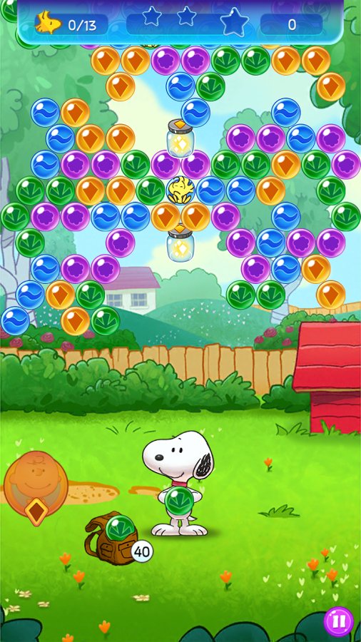 Snoopy Pop – arcade game for Android where you will help the dog Snoopy, pop colorful bubbles. In this game your main task is to shoot colored bubbles at a cluster of them up there, and thus try to release a small bird caught in a trap. Use different weapons to pop as many bubbles as possible to clear the screen from them. Apply in-game bonuses and power-UPS to pass the proposed levels as soon as possible. All the game features more than 100 levels and multiple power-UPS. Play this game and help Snoopy to save all the birds and defeat the red Baron.