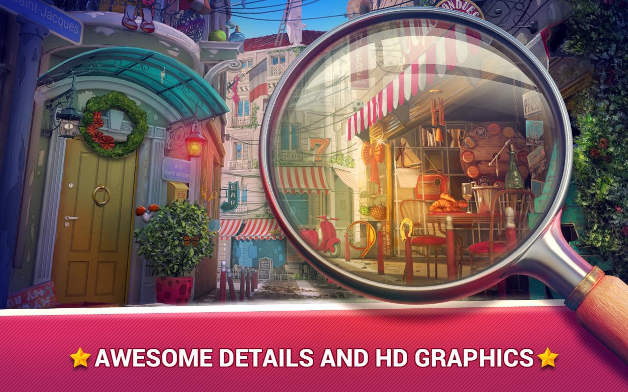 Hidden Objects - Love in Paris – a great game on Android, on search of hidden objects. In this game you will plunge into the world of beautiful and fabulous locations where you will look for the items you want. Navigate to numerous locations and collect more than 2,000 different items. Play this game and check on the fact of your powers of observation and a keen mind, and others needed for this game of ability. Zoom in or otdavayte the picture using the zoom button that will help you to quickly find the desired object and pass the level. With each new level complexity of game will increase and you will have to resort to using hints. Play this game and enjoy pleasant music, lots of items and great graphics.