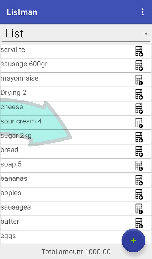 Listman - shopping list - using the app you can not worry that you will forget to buy any product in the store or medicine at the pharmacy. Now there is no need to make a handwritten list and to spend their time. The program allows you not only to copy the list of names from instant messengers, social networks and other apps, but in one motion to expunge already purchased goods with them, indicating the final purchase price at checkout. Doing shopping will not be a tedious affair and will bring many benefits and pleasure!