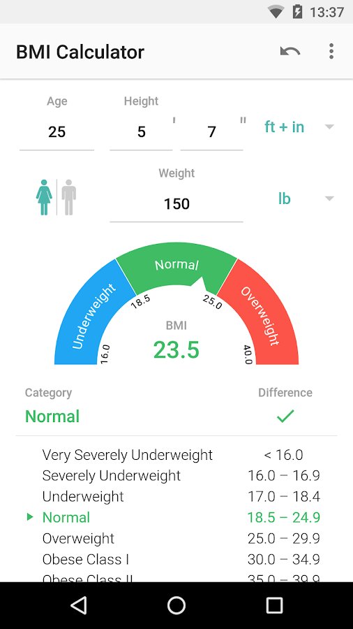 BMI Calculator is designed for those who always want to be in shape and know your ideal weight based on gender, height and age. The program lets you keep statistics of your body to choose the right and healthy diet if you lose weight or are on a special diet. Useful tips will help you not only to cope with the extra pounds, but to feel in good shape.