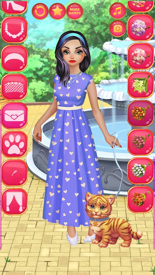 Love Story Dress Up - which of the girls does not dream one day to go on a date with a Prince? So the heroine of this game-dress up intending to go to a meeting with his noble lovers. But first, they need to dress and makeup to impress the beloved charm of the images. Besides, we still have to decide where you want to go on a date. At the prom, maybe in the Park? A lot of options. In this game, new types of items: headbands, masks, mesh and corsets. This is in addition to many other items of clothing as well as shoes, jewelry and cosmetics. There is an opportunity to seize on a date beloved pet - the kitten, puppy or even a baby tiger.
