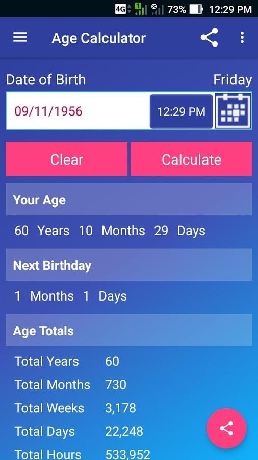 This is an interesting application will allow you to figure out how much time you have already spent on Earth. The calculation is made not only to months and days but also in hours and even in minutes. In addition, with its help you can plan your birthday or anniversary for a few years before an important date, knowing which days of the week to have the upcoming events. Also Age Calculator Pro is a great calendar and thanks to him, you will be able to calculate the interval between two specific dates. Learn day of the week you are interested in any dates just a couple of minutes. In addition, at any time, you can check leap year is current year or not.
