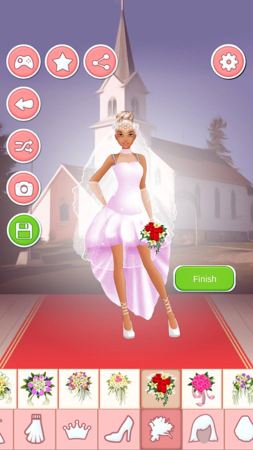 the Best day! The holiday, which dreams of almost every girl - her wedding day. Someday you ll be a beautiful bride in real life, and yet you can arrange a dress rehearsal for pre-installing this game. Select the perfect outfit for the bride, choose a hairstyle, shoes, with a selection of handbags and don t forget the wedding bouquet that will definitely catch your best friend. Any bride wants to look perfect in their wedding day, and only with your help the dreams of the main characters (four of them) can come true. After done with the last preparations, don t forget to take a picture of your gorgeous bride and share the with your friends.