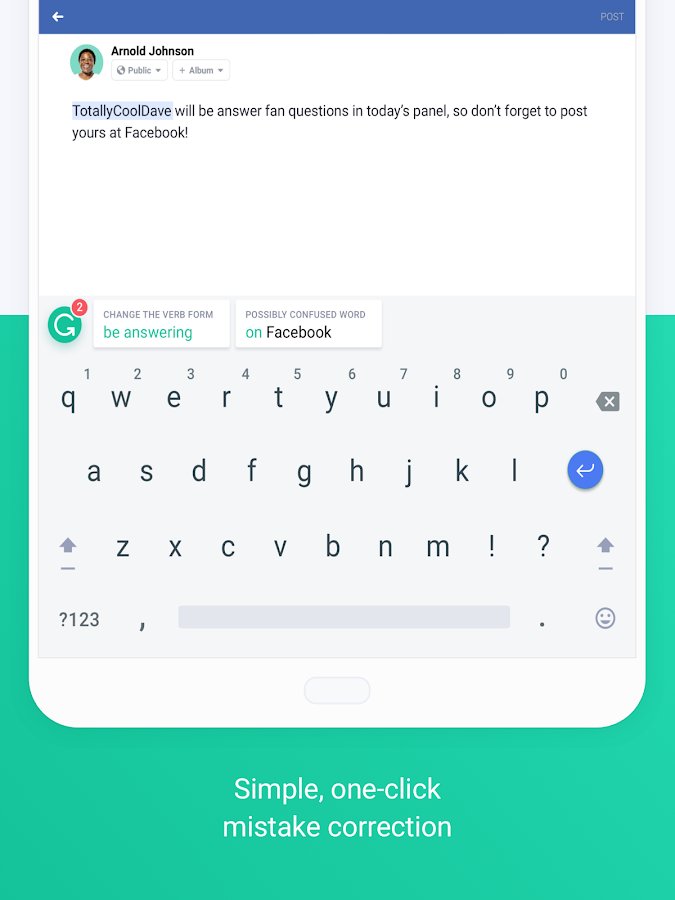 Keyboard Grammarly - an application that helps you write messages without errors. Of course, each person periodically make mistakes in writing, any word on time or forgets to put a comma. But if you lead a business correspondence with someone whose opinion is very important to you, you need to follow for compliance with the rules of spelling and punctuation. One of the main advantages of Grammarly Keyboard is that it automatically integrates with all applications and will carry out testing in any of your messenger. It will not only help to correct the existing errors, but also will highlight those words where the mistakes were, so you could consider it for the future.