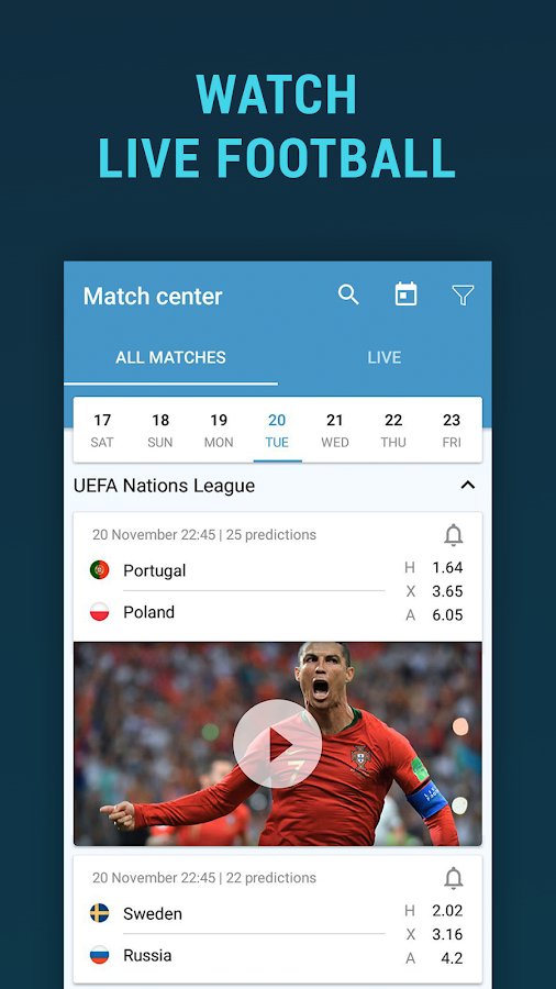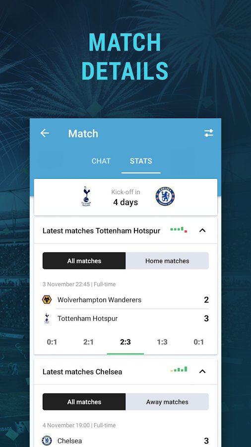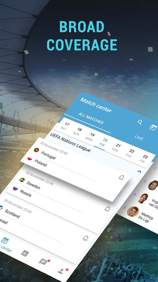 recently free access to the Internet allows you quickly and easily find any sports data, starting from the results and finishing the competition schedule and teams. But there is a more easy way to learn all you are interested in, just install the application called BI - Live Football scores, statistics and results and you just a couple of clicks you will be able to learn all that relate to football. it is worth noting that the developers have integrated a chat that will allow you to communicate with other fans.