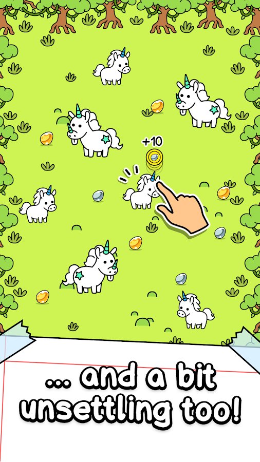 Unicorn Evolution - a Fairy Tale Horse Game – a game on Android where you will evolve unicorns. The large horns of the unicorn now not indicators and these fabulous animals decided to participate in the evolution and to discover new types and forms. Connect same of unicorns together to create new mysterious creatures. Use eggs unicorns to discover new species, and get more coins. Click as often as possible in unicorn and thus produce eggs. Play this game and enjoy colorful graphics and a variety of types of unicorns.
