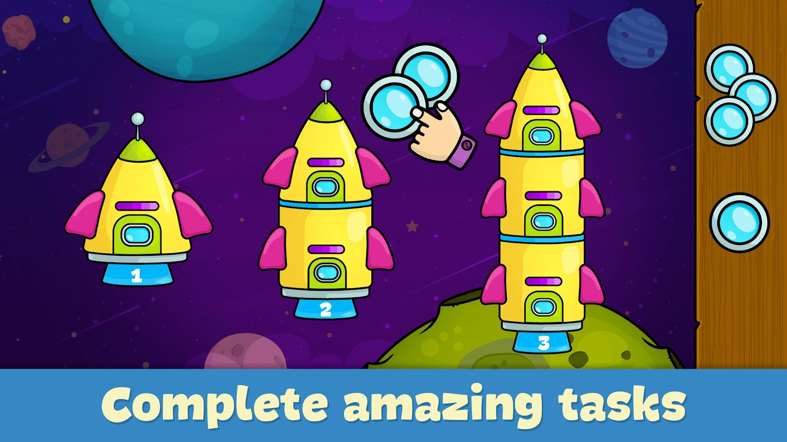Learning games for toddlers age 3 – educational game for preschool children which contains 56 different games. This game will help your child develop fine motor skills, coordination skills, logical thinking and visual perception. This game was created with the support of experts in the field of home education, and is perfect for kids from 1 year. In this game your child will learn to recognize the difference between the sizes, sort the plastic shapes, learn numbers, develop memory, and to identify colors.