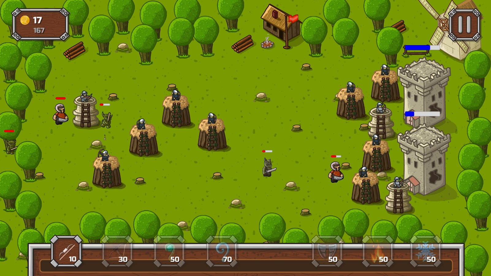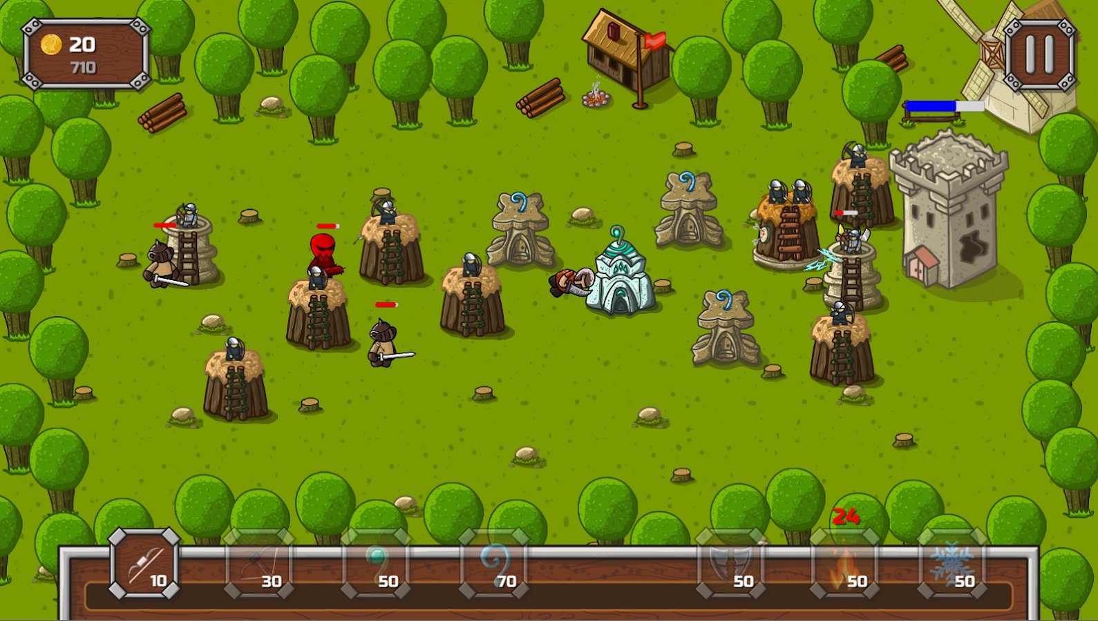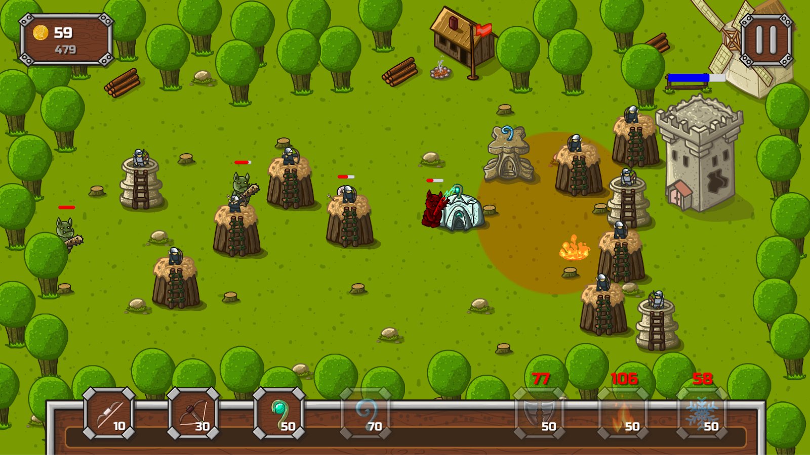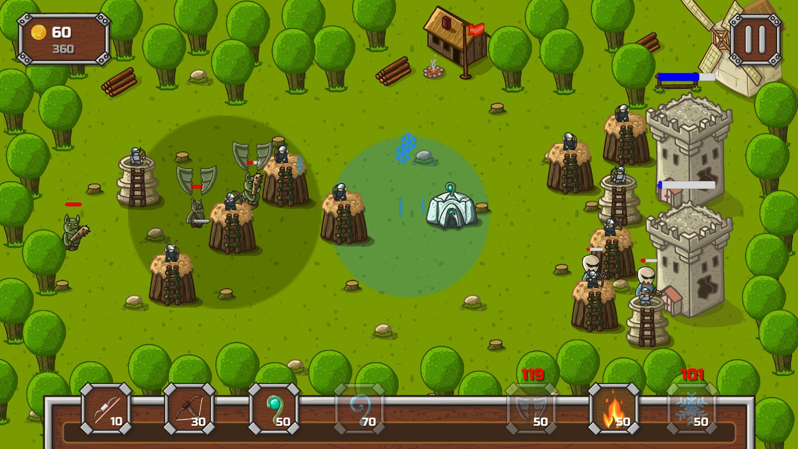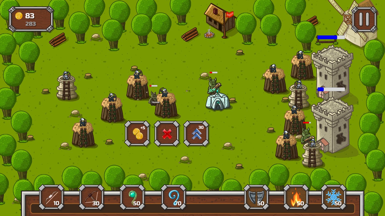 Defend My Towers! – addictive strategy game for Android where you will defend your castle from enemies. In this game your task is to build towers in different places and destroy the enemy. Develop your tactics of warfare and consider the strengths and weaknesses of the enemy. Use spells and thus reduce the health and defense of the opponents and slow them. Win battles and increase your rating climbing higher in the leaderboard. In this game you will find several types of towers each of which have different properties.