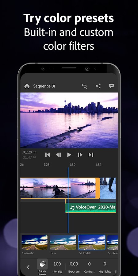 Adobe Premiere Rush — Video Editor - new video editor from Adobe that was created specifically for those who work and spends a lot of time on the Internet. And so, this program will allow you to shoot, edit, and share videos data, with a wide range of tools, filters and functions will give you the ability to create any content, all will depend only on your imagination. For novice users, the developers have added a number of built-in templates, presets and presets.