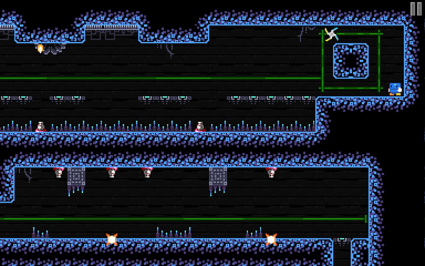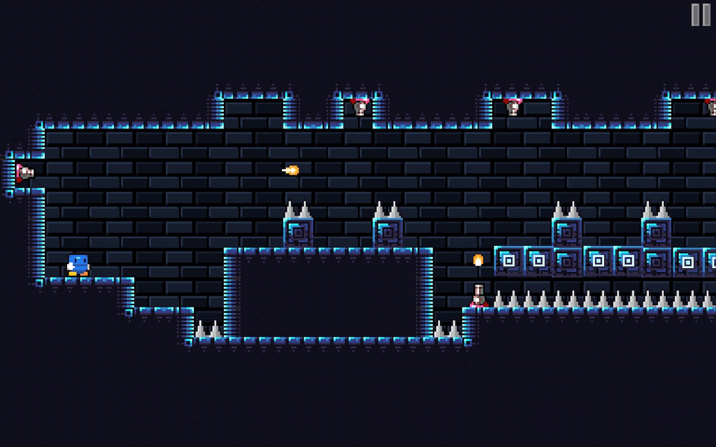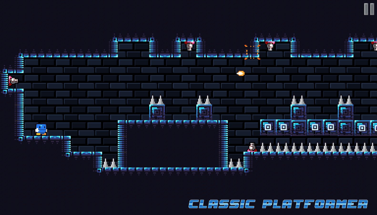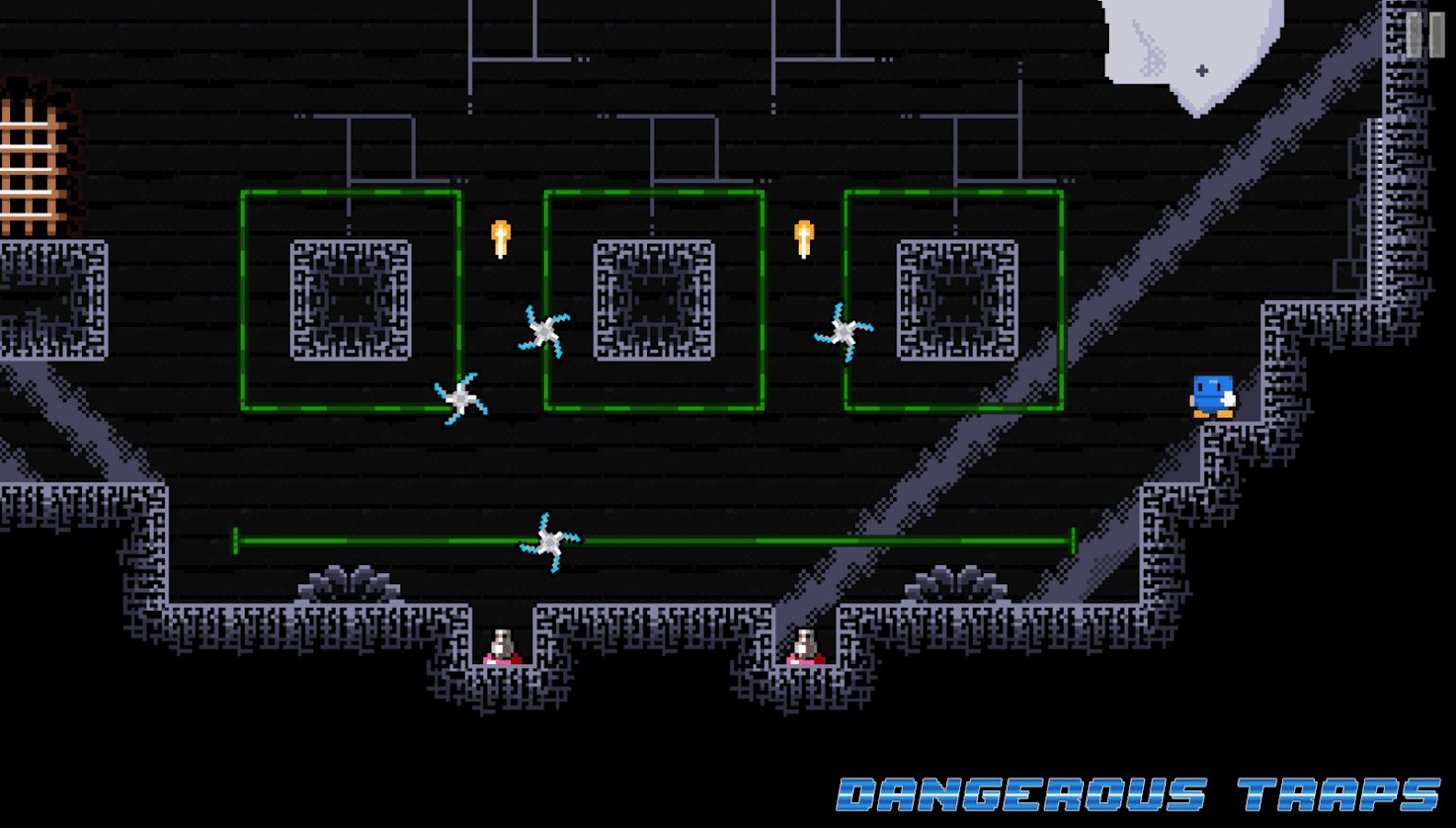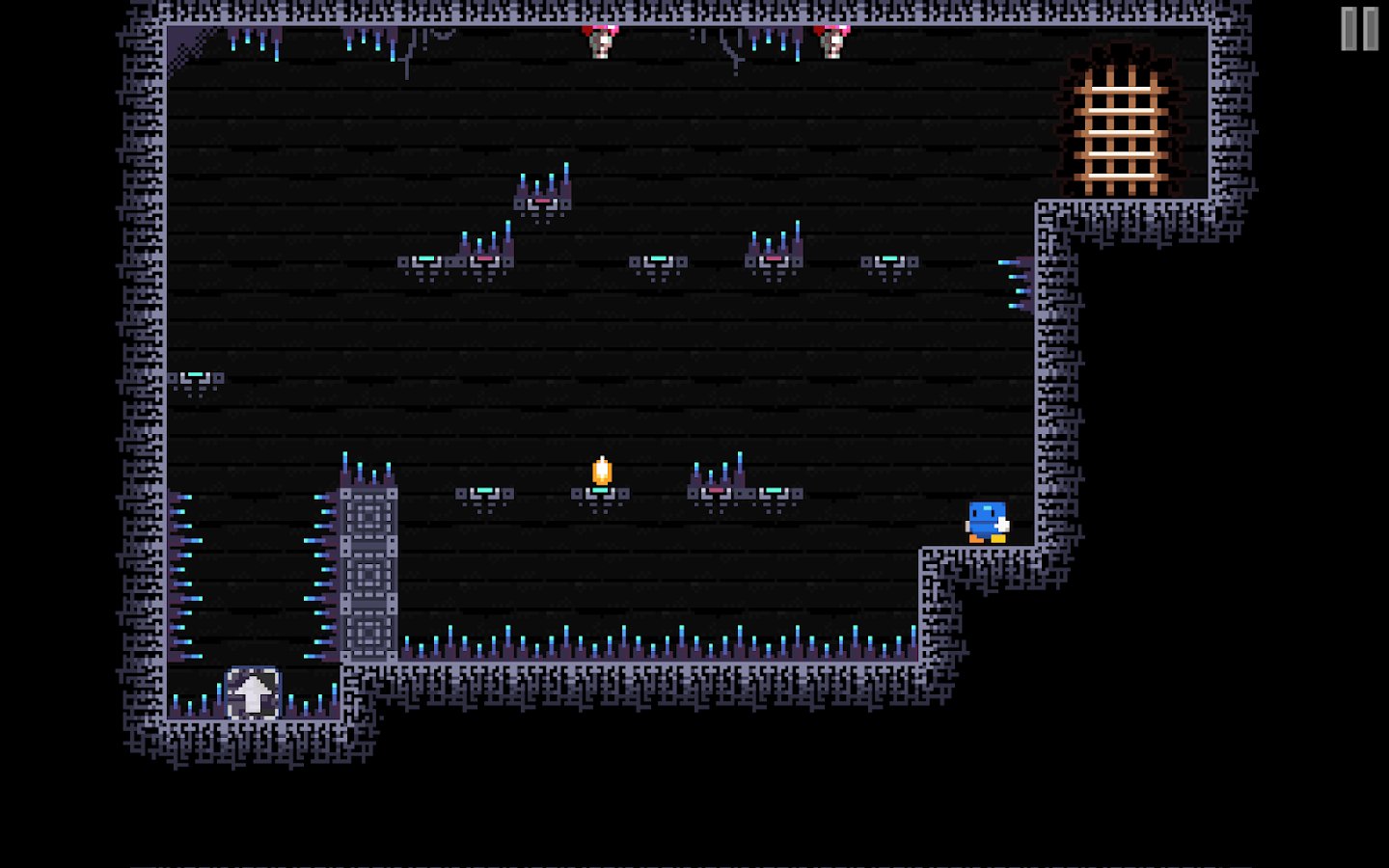 Blu Escape - Hardcore Platformer – hardcore platformer for Android, created for the whole family. This game will challenge your skills and mind in order to find out if you pass all levels of the game. Take control of your character and guide him through the dangerous environment of the dungeon. Run, jump and try to reach the exit to pass the current level and move onto the next. Go through all the trials and missions of the game and overcome all the obstacles on the way. The game is made in retro graphics and does not require you special skills and abilities.