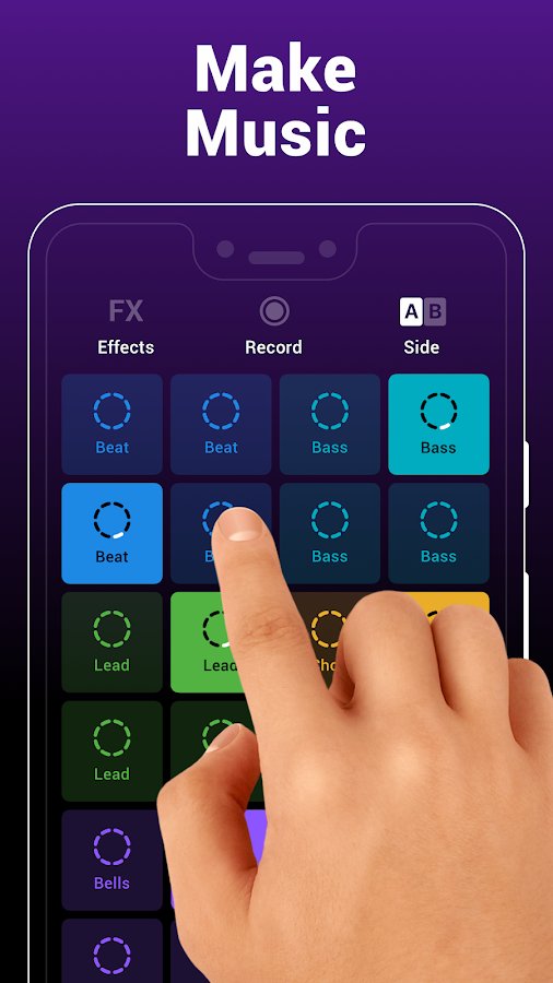 Our app for creating rhythms will teach you how to create your own songs and play different musical compositions. Just choose your favorite genres and click on the panel to set a rhythm and create music! Experiment, mix styles, create incredible melodies and step by step improve your skills in creating rhythms in Groovepad.