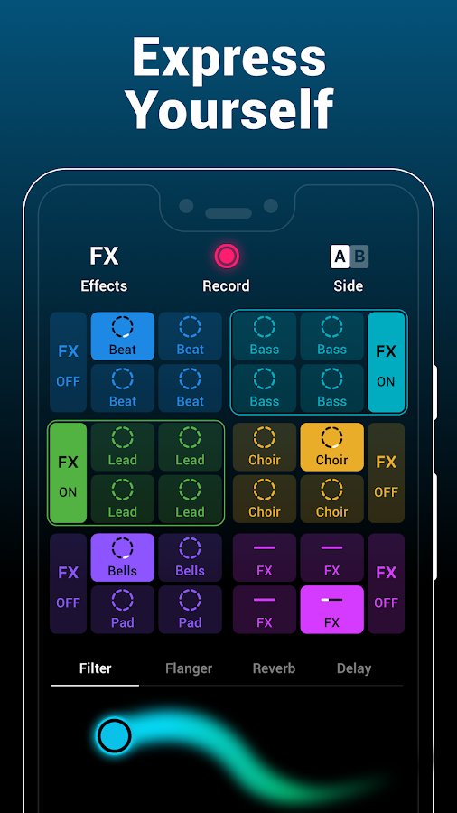 - Impressive special effects: filter, Flanger, reverb and delay to complement your music and to liven up a party;