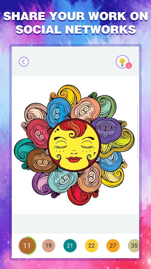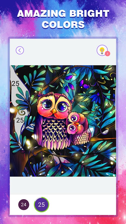 Happy Color By Number – an entertaining game where you will paint pictures by numbers. If you feel stressed or bored discover fascinating coloring book where you can enjoy the art of drawing. In the game you will find a huge variety and modern works. Enjoy every moment with us. Each image will be marked with numbers for each of the digits are the color. Fill the whole image with different colors and paints and go through the exciting stages of the game.