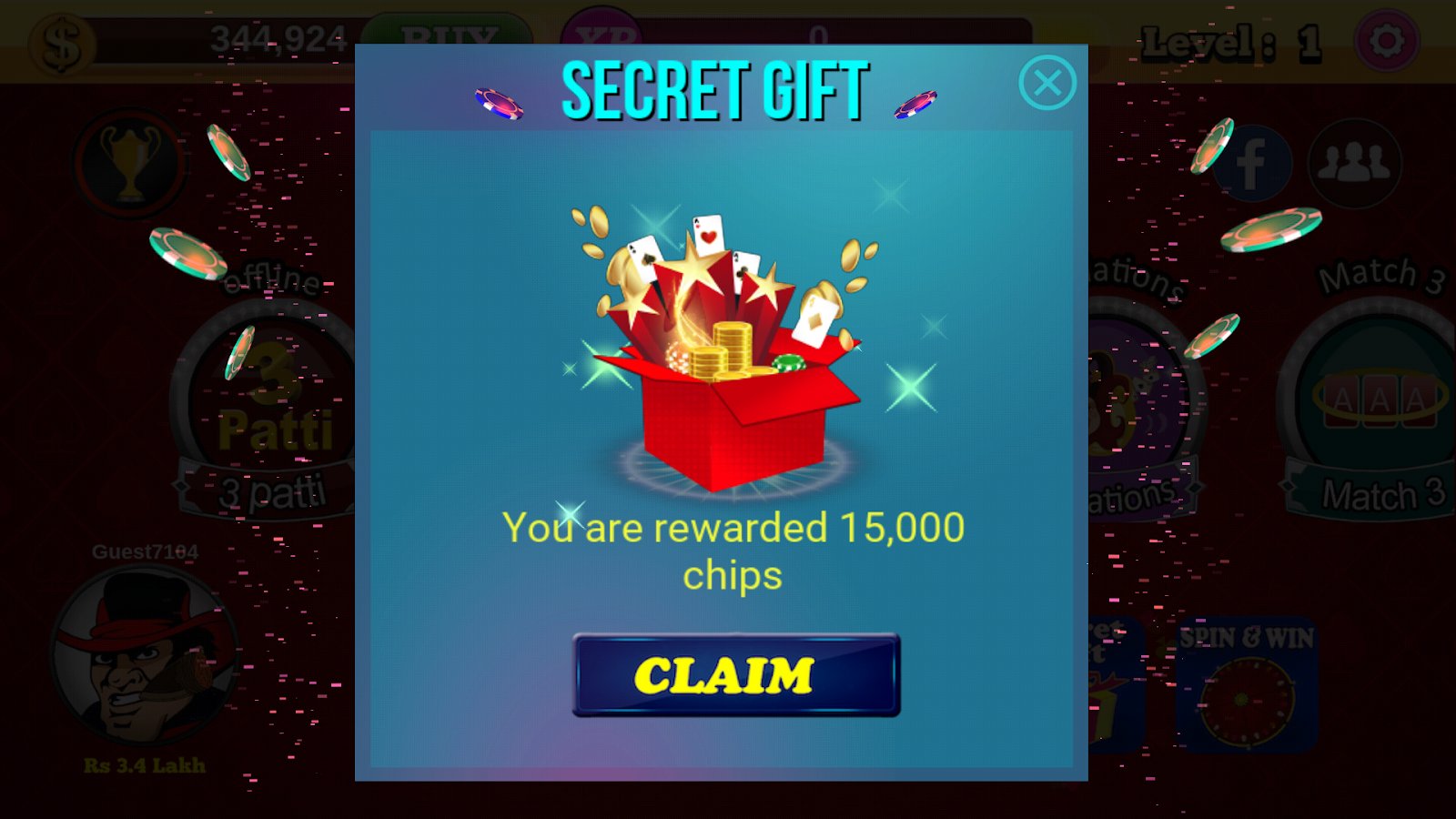 Teen Patti Royal Indian poker for Android where you will start the game with 50,000 chips and bonuses. Play this game with friends and other players, participate in tournaments, anytime, anywhere in a network or online. In the game you will get free chips every 15 minutes and daily bonuses which will allow you to increase your chips. A rich system of rewards will allow you to win big. Win huge amount of money and track your stats. Dominate the game and become the best player pumping and improving your gaming skills. Spin the wheel and win more chips.