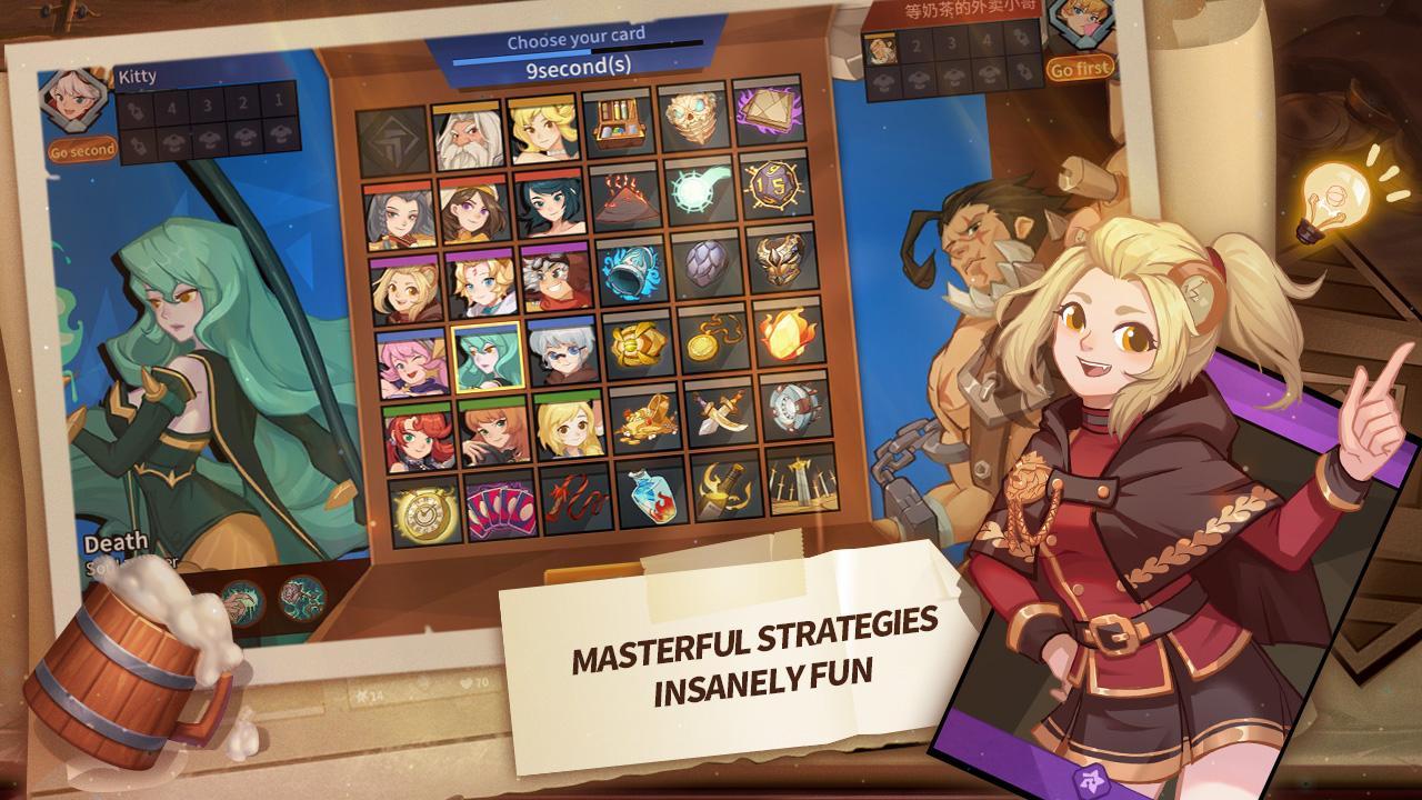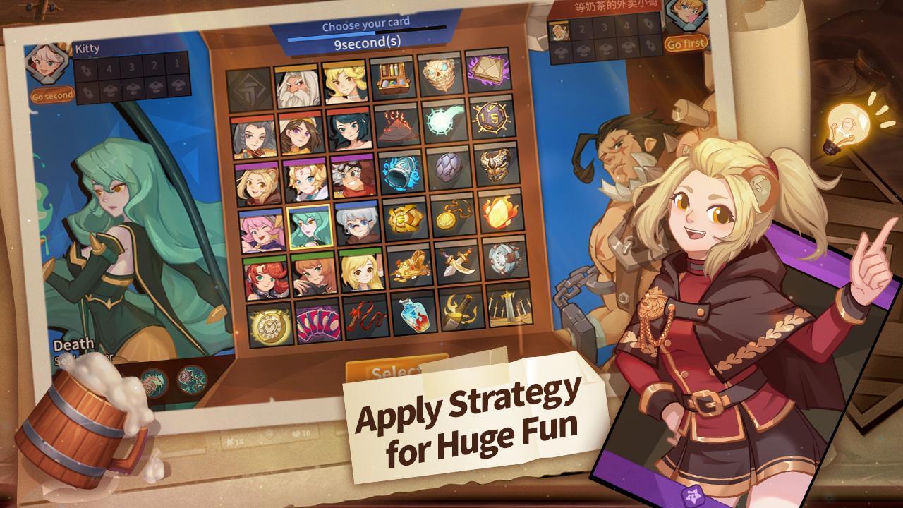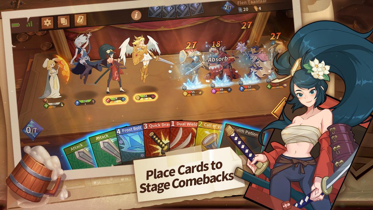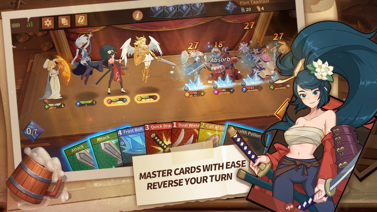 My Turn - a card game for Android in which you need to collect different characters, choose a strategy, engage in battles and win. You are waited for by 36 characters, which are divided into 5 classes. Assemble a powerful deck with 4 character cards, 4 cards and 2 equipment items. Anyone can easily assemble exclusive decks and duel players all around the world. Defeat their opponents and climb to the top of the leaderboard.
