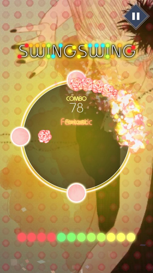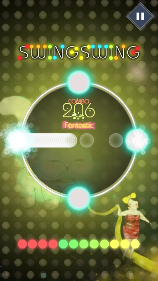 SwingSwing : Music Game – a game on Android, with many layers. In this game your main task will be the right time to touch the screen of your phone or tablet and move to the beat of the music. This game is perfect for both beginners and for experienced players who have a high level of training. With each new selected song will change and style of play. All in the game you will find 16 different songs and three difficulty levels. Pick a difficulty level that matches your play style and enjoy dynamic gameplay. Earn more score in fever mode.