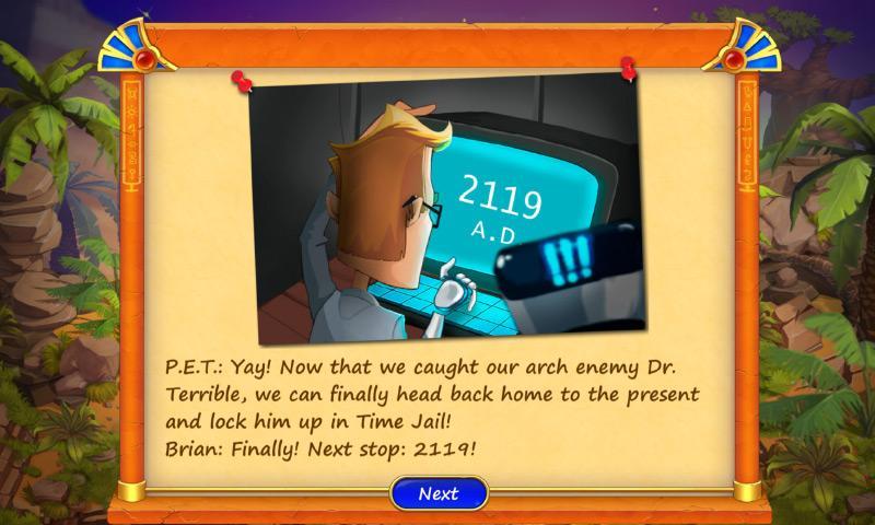 a Journey through time do not always end well! In error brown and P. E. T back in a few hundred years ago. In the days when the pyramids were built and was ruled by Pharaohs. Travel with our hero through the mysterious Egypt, exploring its ancient monuments and artifacts. The world of Ancient Egypt is full of secrets and mysteries, fantastic creatures, ancient artifacts, totems, mysterious letters! In this exciting game more than 40 levels, a variety of interesting jobs, fun story, simple and addictive gameplay. Dangerous opponents, exciting locations. To your choice will appear sea beaches, colorful valleys, mystical oases and hot Savannah.Help people to restore justice, seek treasure and battle the minions of the Pharaoh. You have to make history, becoming the Savior of ancient Egypt from a terrible movie.
